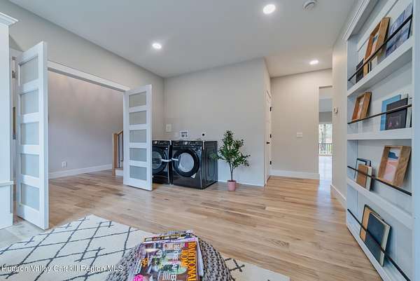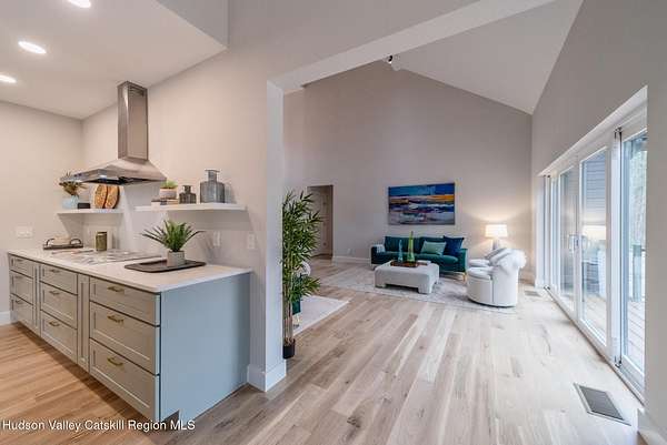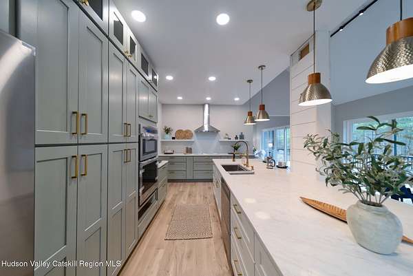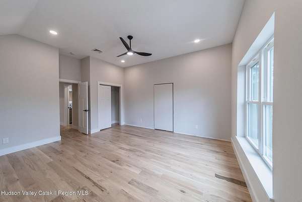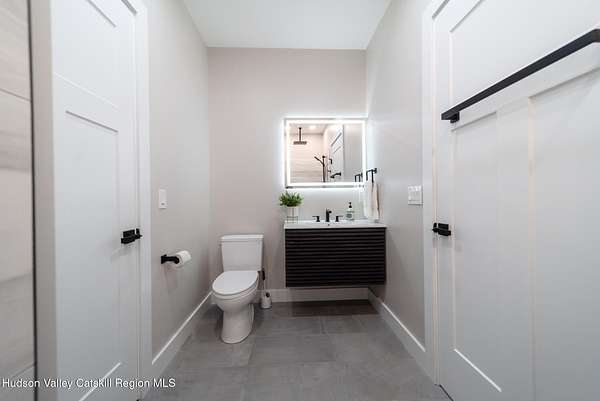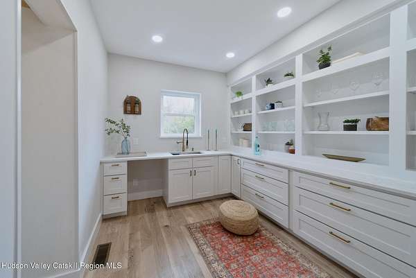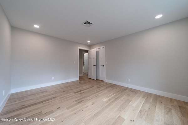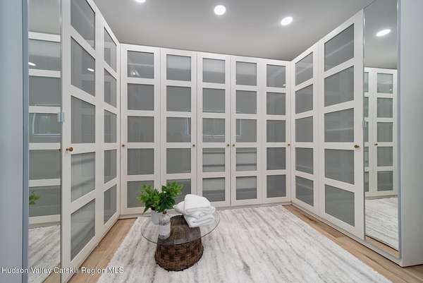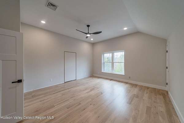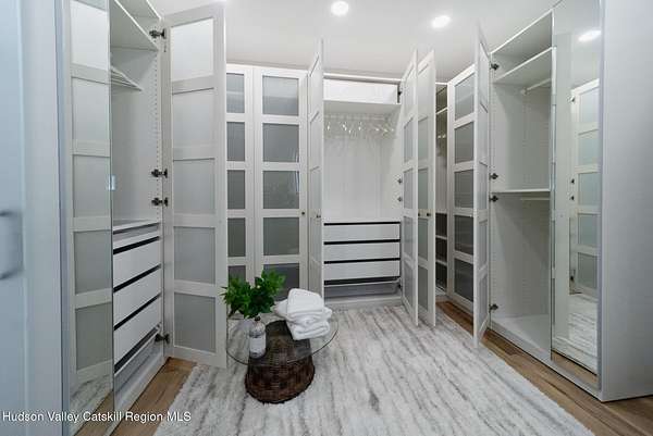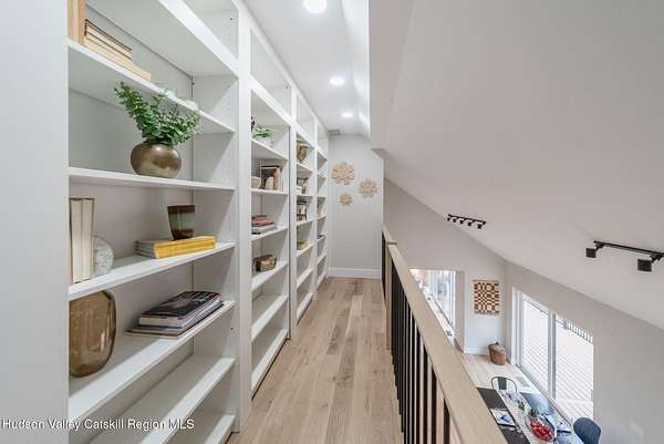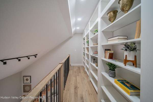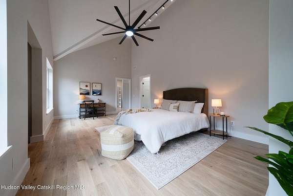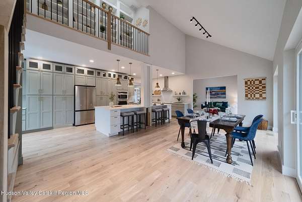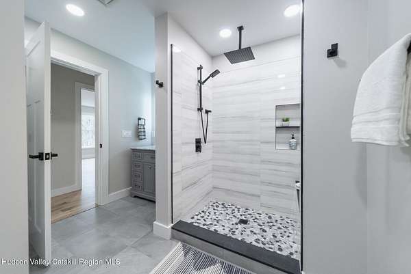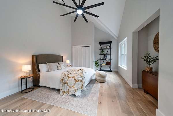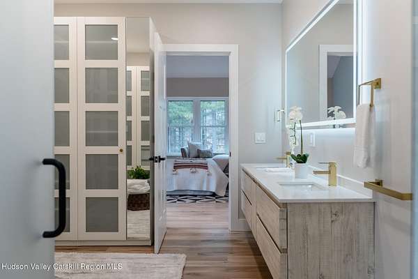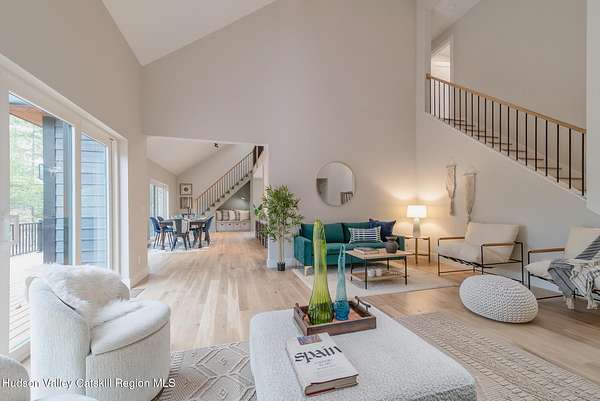Set on six private acres surrounded by mature trees, natural rock outcroppings, and the quiet beauty of the Hudson Valley, this newly constructed 2026 contemporary estate delivers a refined blend of modern design and organic elegance. A striking exterior of Everlast Storm Grey siding paired with warm natural wood accents and expansive windows creates a dramatic first impression while inviting natural light into every corner of the home. Inside, five inch white oak flooring flows seamlessly throughout the main level, guiding you into a sun drenched living room designed for both relaxation and entertaining. The kitchen is a true centerpiece, thoughtfully curated with a generous center island, custom cabinetry, and an intimate reading nook. A concealed pantry complete with wine cooler, shelving, and prep space offers the perfect hidden hub for hosting, while easy access to the expansive deck invites effortless indoor outdoor living with peaceful woodland views. The primary suite offers a tranquil retreat with a spa inspired bath featuring a luxurious wet room designed to restore and recharge. A second main level suite with soaring ceilings and a full bath provides exceptional flexibility for guests or multigenerational living. The morning room enhances daily routines with built in cubbies, lounging space, and an organized transition into the day. Upstairs, two additional bedrooms with oversized closets share a well appointed full bath. Dual staircases add architectural intrigue and lead to unexpected hidden spaces that can serve as reading nooks, creative studios, or private escapes. Custom millwork, designer fixtures, built in shelving, and bespoke doors elevate every detail. A full walkout basement expands the living possibilities, while state of the art geothermal heating and cooling ensures year round comfort with energy efficiency. Ideally positioned in the Hudson Valley, this property offers convenient access to the vibrant energy of Uptown Kingston, explore the historic streets, acclaimed dining, and cultural attractions found Uptown. A short drive to Kingston's Rondout area with it's riverfront activities along the Rondout Creek and the Hudson River is another destination with its eateries, shops and museums. Enjoy touring Hurley's Stone House Historic District or play a round at the prestigious Wiltwyck Golf Club. Outdoor enthusiasts will appreciate nearby access to the scenic Hudson Valley Rail Trail, along with hiking, biking and more! A rare offering that seamlessly blends luxury, privacy, and access to some of the Hudson Valley's most desirable destinations, this home delivers an elevated lifestyle in a truly exceptional setting.