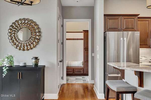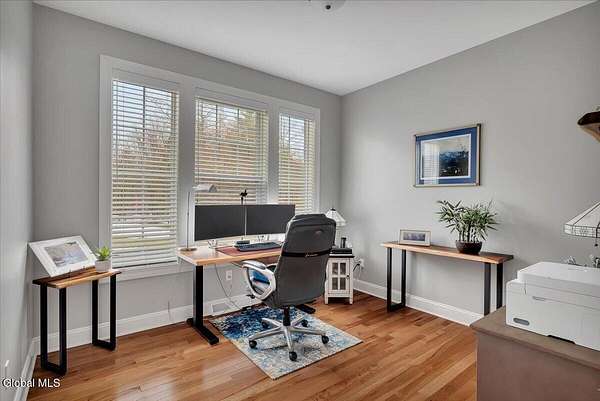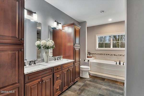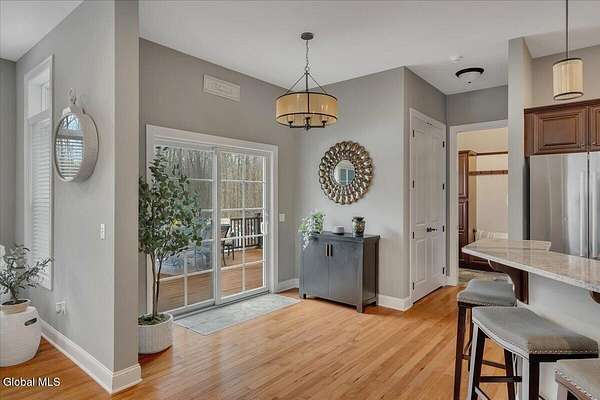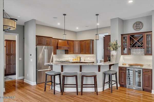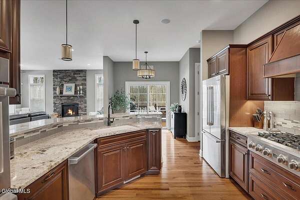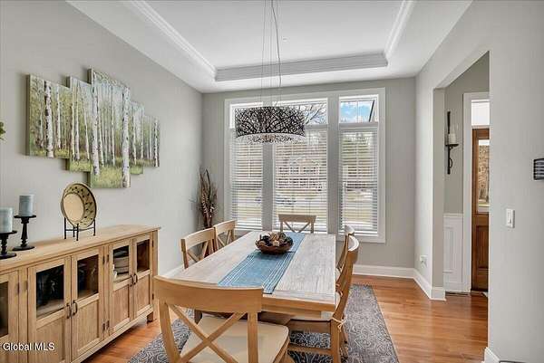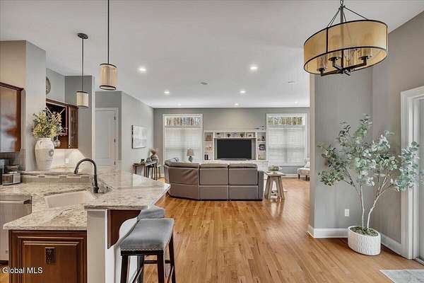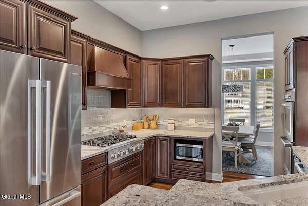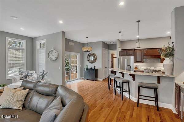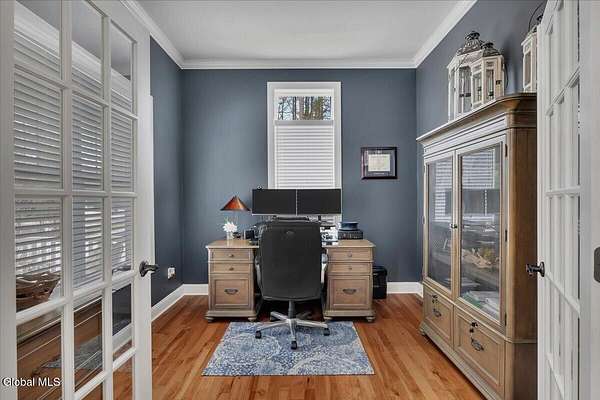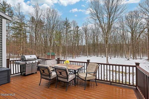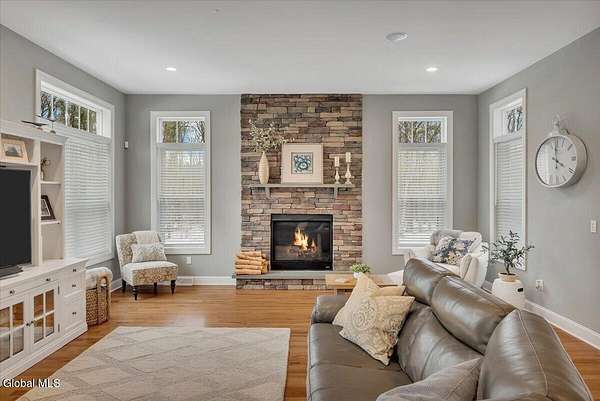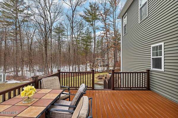Experience refined living in this exceptional custom Colonial set on more than 1.5 private acres in the sought-after quiet Creekside Park community, Ballston Spa schools, just minutes from Saratoga Springs. Thoughtfully designed with over 3,800 square feet over 3 levels, this 4-bedroom, 4-bath home blends timeless architecture with modern comfort. From the moment you enter, soaring 10' ceilings, rich hardwood floors throughout first and second floor, and detailed moldings create an atmosphere of sophistication. The open-concept main level is ideal for both everyday living and entertaining, featuring a dramatic family room with a floor-to-ceiling stone gas fireplace and expansive windows that fill the home with natural light. The gourmet kitchen is a chef's dream, complete with granite countertops, premium appliances, custom cabinetry, and generous space for gathering. A private office with French doors provides the perfect space for working from home or quiet retreat. Upstairs, the luxurious primary suite offers a serene retreat with a spa-inspired bath and spacious walk-in closet, while additional bedrooms provide comfort and flexibility for family and guests. The finished walkout lower level expands the living space with a recreation area, possible additional 5th bedroom, and full bath--perfect for guests, a home office, or multi-generational living. Outdoors, enjoy peaceful surroundings from the composite deck overlooking the beautifully landscaped yard. A charming large covered front porch, irrigation system, and oversized two-car garage complete the home. Located in the Ballston Spa School District and bordering a protected nature preserve with a tranquil stream and direct access to more than 4 miles of scenic walking trails, this remarkable property offers privacy, luxury, and convenience just moments from the vibrant shops, dining, and culture of Saratoga Springs.