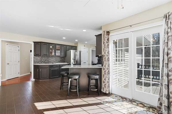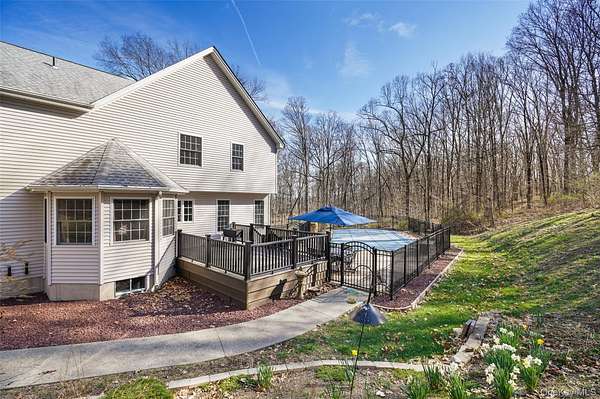Est $5,431/moPrivately set back from the road on over five acres, this well-maintained and spacious Colonial offers both tranquility and comfort. A welcoming center hall opens to the great room, complete with wood burning stove, conveniently located half bath, dining room and laundry room. The kitchen, great room, and laundry room feature durable and elegant porcelain tile flooring. Upstairs, you will find four generously sized bedrooms and two full bathrooms. The finished basement expands the living space with an additional bedroom, entertainment area, office, exercise room and ample storage. Outdoors, enjoy relaxing or entertaining on the attractive trex deck and inground salt water pool