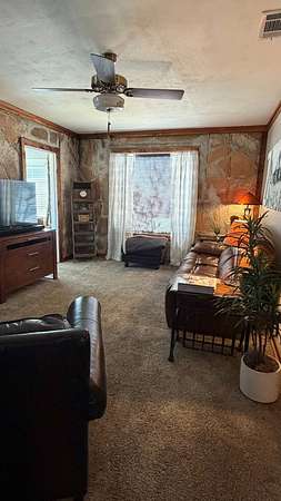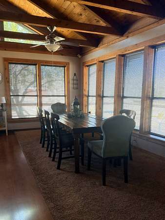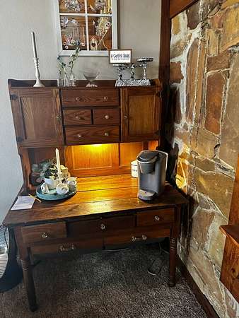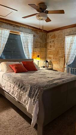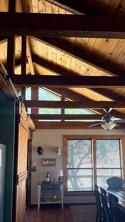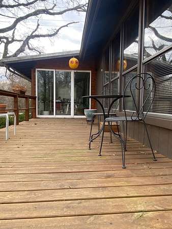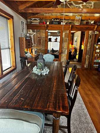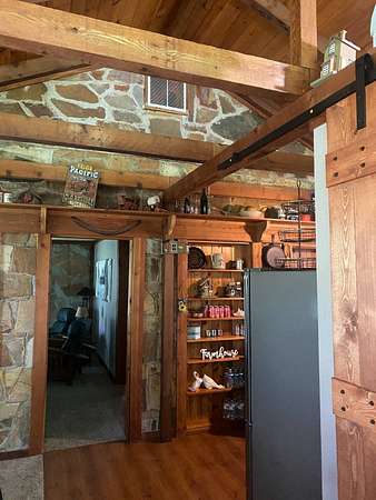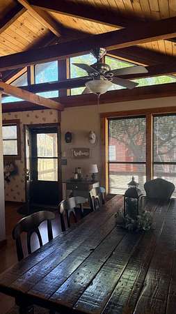 Discover this historical rustic home nestled in Bryan County, Oklahoma. Perfectly positioned on the main road between Durant and Hugo. This unique property blends character, charm, and modern updates creating the ideal primary residence, weekend retreat, or recreational rental. The main home features 1 bedroom, 2 full baths, a cozy living room, kitchen, dining room, and a bright sunroom, totaling approximately 1,200 sq ft of comfortable living space. The home was renovated in the mid 1990's to include ski-chalet-inspired wood beams, expansive windows with amazing property views, and updated appliances including a newer stove, dishwasher, and built in microwave. A sliding barn door encloses the washer/dryer area for added charm. A separate two level guesthouse provides an additional 600 sq ft, complete with a half bath and wall-unit heat/air, perfect for guests. Enjoy multiple outdoor living areas including a wrap around deck on the main home, a covered patio at the guest house, and an outdoor fire pit and patio area for relaxing. The property spans a little over 25 acres, offering a creek fed pond and ATV, hiking, and hunting trails. Additional features include a new 2 car garage, shop building with running water and electricity, new HVAC system with heat pump, wood burning stove, sprinkler system, and a working Well that provides water to the entire property. This one of a kind property won't last long. Don't miss your chance to own a little piece of comfort!