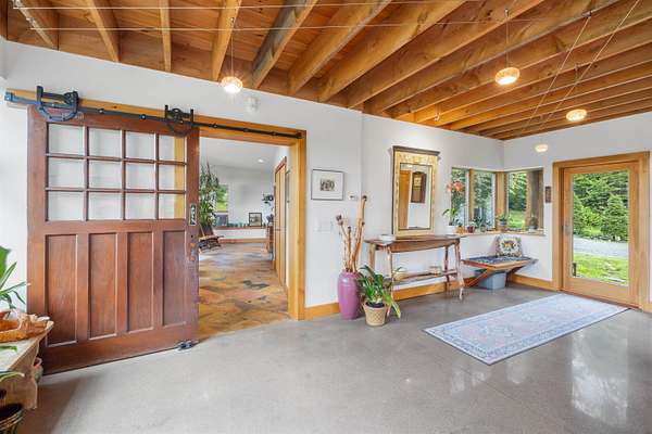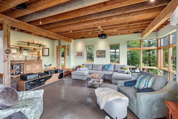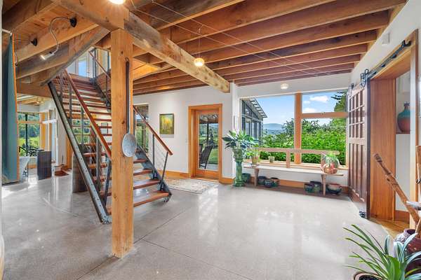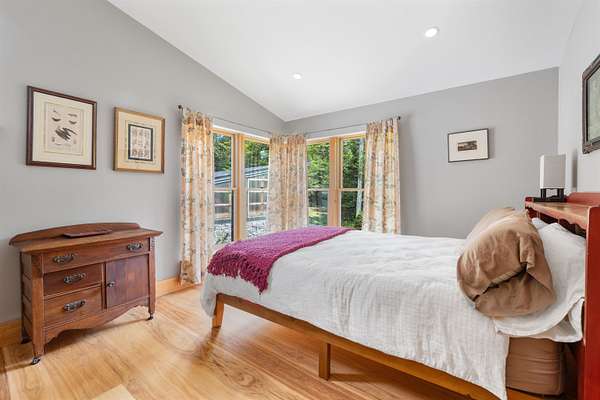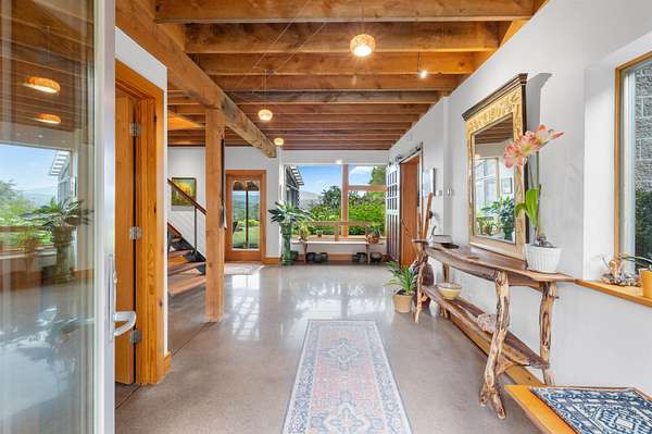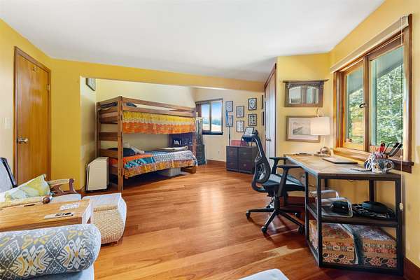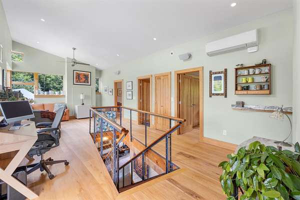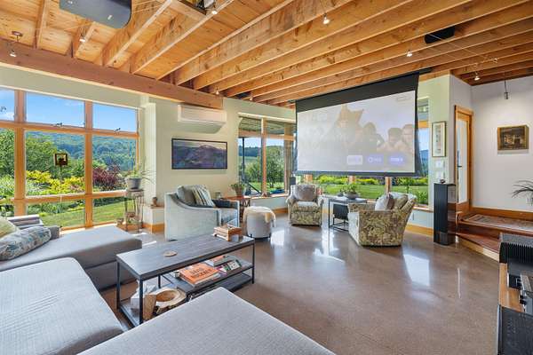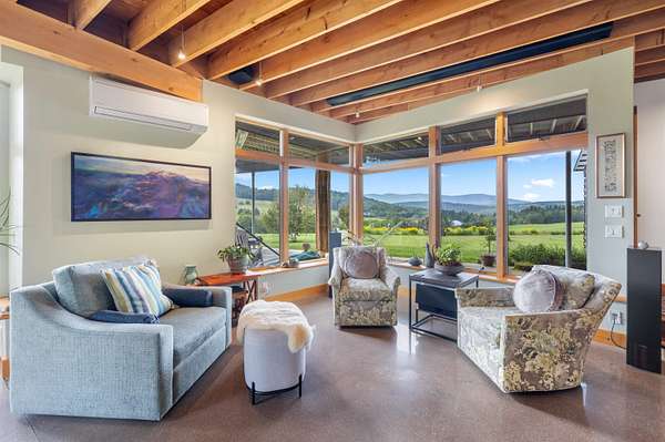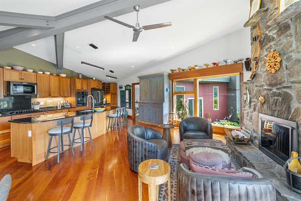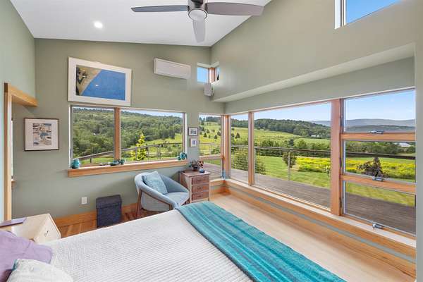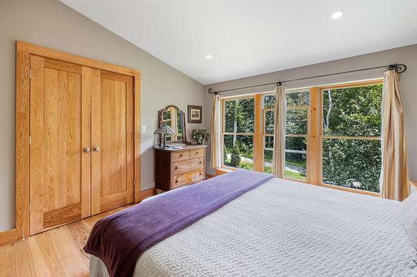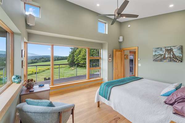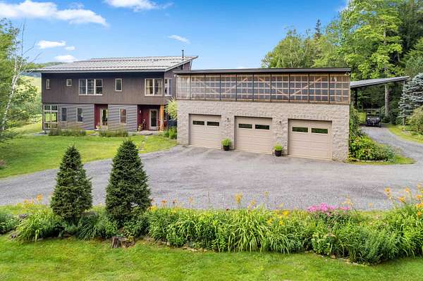Private Vermont Sanctuary with Spectacular Mountain Views. Tucked away on a quiet dead-end road, yet just minutes to Hermitage Club, Mount Snow and downtown Wilmington. Every room offers a view. Direct snowmobile access and walking trails! Set on 20 private acres in the heart of Vermont's Green Mountains, the property features panoramic views of Haystack, Mount Snow, and the spine of the southern Green Mountains. With over 4,200 square feet of thoughtfully designed living space, the interior boasts clean lines, a Primary suite with walk-in closet and spa-like bath. Floating staircase, a large foyer, and a screened-in porch for enjoying warm evenings. Vaulted ceilings, radiant heat throughout, and walls of windows frame the stunning mountain and valley vistas. Open-concept kitchen and dining area with granite countertops, custom cherry cabinets and flooring, large center island, and a massive stone fireplace. Direct access to multi-level decks. Spacious living room with exposed beams and a cozy sitting area with a Projection System and a Custom high-end audiophile Sound system. Oversized heated 3-car garage. Enjoy outdoor living at its best with beautifully maintained flower gardens, open fields, a mature mixed forest, a patio, a hot tub, an outdoor shower, and creek frontage.