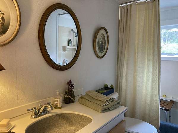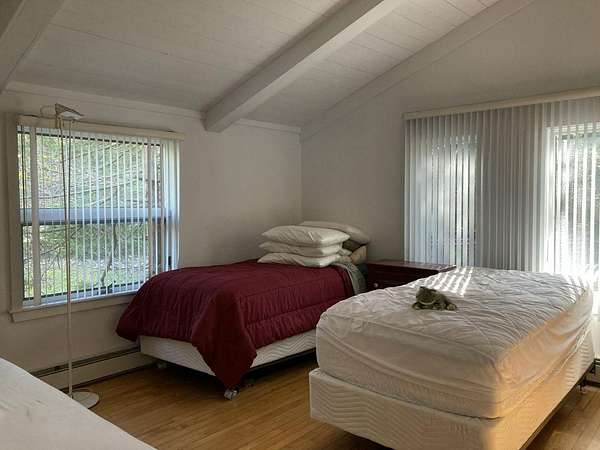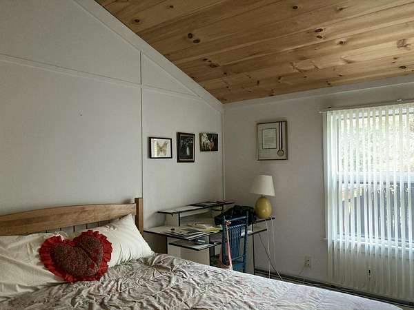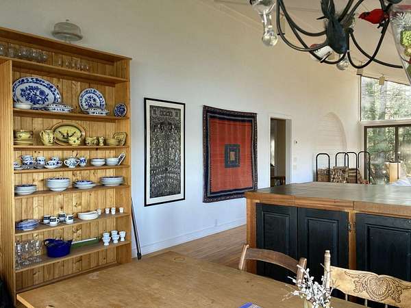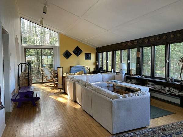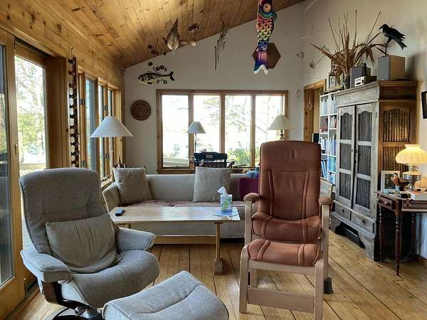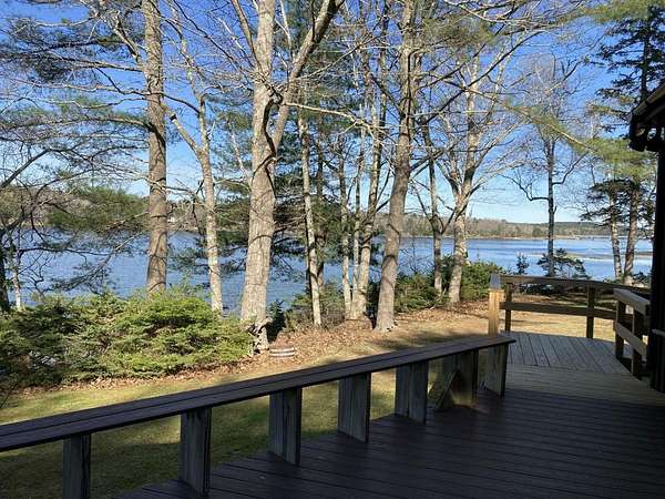 Nestled in an unusually natural setting on a six acre elevated site with 155 ft. on the water and a beach, this contemporary has views of Taunton Bay from all rooms except one of the bedrooms and the bathrooms. An open living room has a wall of windows to the bay, built-ins, a wood burning fireplace with additional built-ins dividing the dining room with a wall of windows. Easy galley kitchen with plenty of cabinets and a pantry, all a few steps for your prep and cooking needs. The den, off the primary bedroom, opens to the deck. A natural wood ceiling, windows on the water, a wood stove and built-in book shelves complete this cozy reading room and office space. Three bedrooms, two of which have glimpses of the bay and two full baths are all on the back side of the house. The beach is accessed by steps from the lawn. In a protected cove on the bay tempered from the open ocean's winds and seas, the house and land together hold a calmness. Taunton Bay is a kayaking mecca for bird watching or just a peaceful paddle in and out of coves. Walk to summer concerts at the renowned Monteux School & Music Festival with a public symphony concert led by student conductors & musicians each Sunday and Wednesday evenings. Short distances to many hiking trails on the Hancock Point Peninsula, tennis courts, and harbor. Three outstanding restaurants minutes away and half way between Mt. Desert Island and Acadia National Park and the Schoodic Peninsula's branch of Acadia.