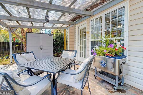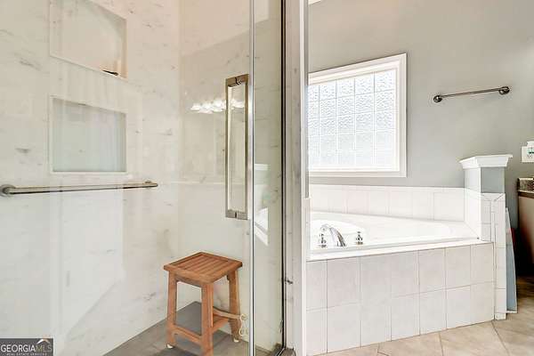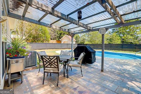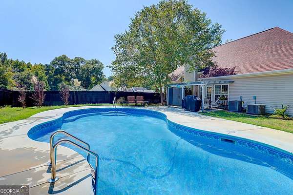 Thoughtfully Designed Retreat with Private Suite Upstairs. From the moment you enter, this home reveals a layout that blends privacy and effortless flow. The primary suite occupies its own wing, complete with a serene sitting area and a beautifully remodeled bath featuring a sleek, low-entry shower. The heart of the home is an open great room connecting the living and sitting areas, all overlooking a covered patio and a sparkling kidney-shaped in-ground pool-perfect for relaxing or entertaining. On the opposite side, a roommate-style wing offers two comfortable bedrooms with a shared en-suite bath and a conveniently located laundry room, keeping daily routines easy and organized. Upstairs, an entire private suite awaits, complete with a full bath, linen closet, and generous clothing closet-ideal for guests, an older child, or a peaceful home office. Set in a quiet, sought-after location, this residence feels both welcoming and impeccably planned, balancing modern updates with timeless design.
