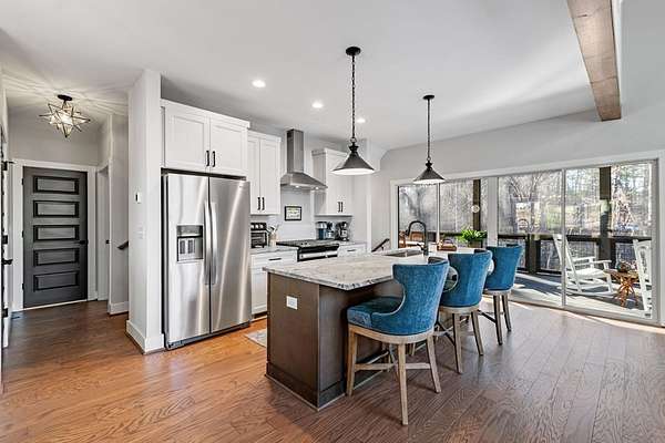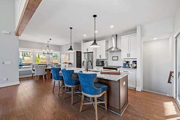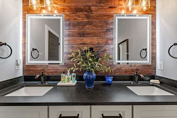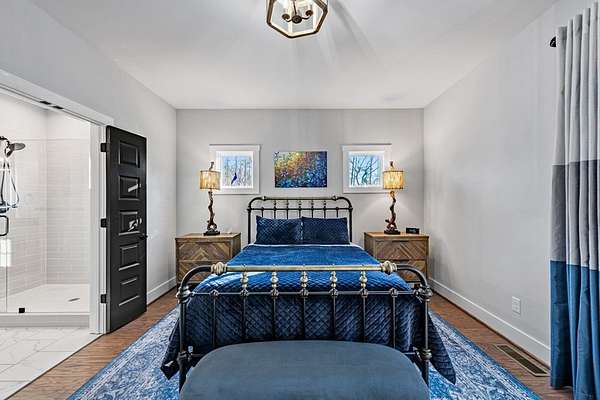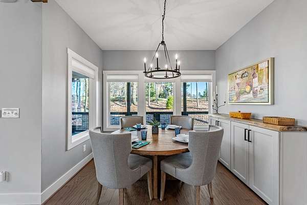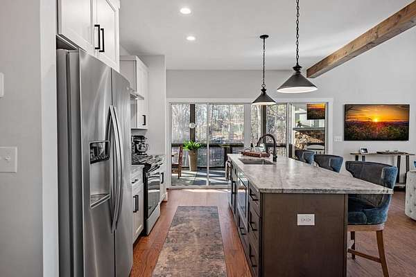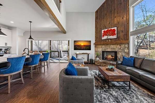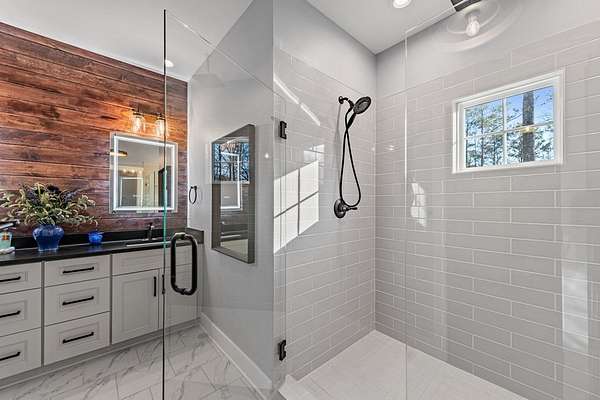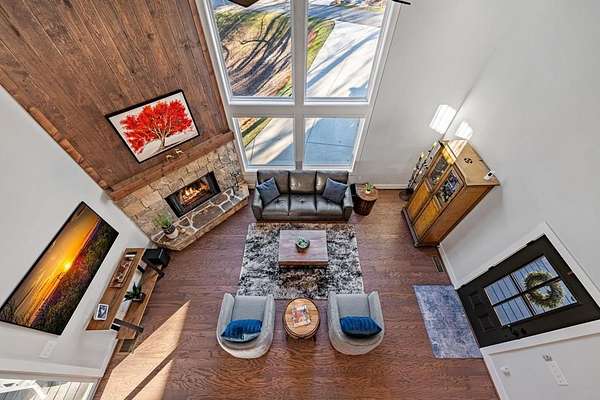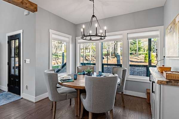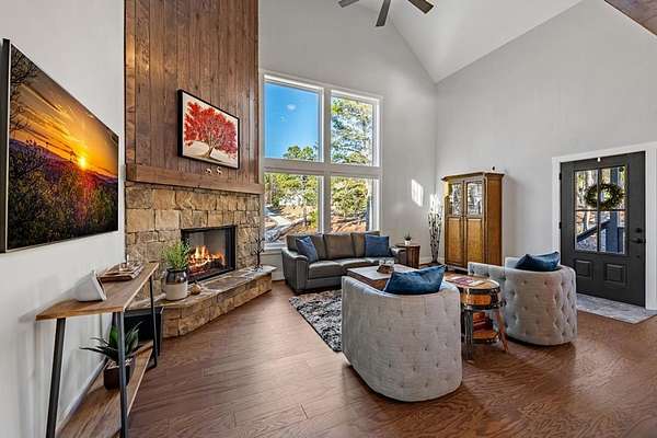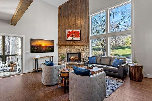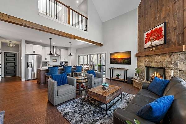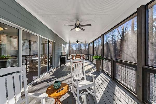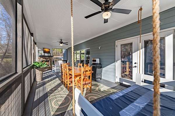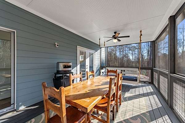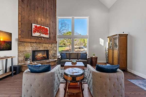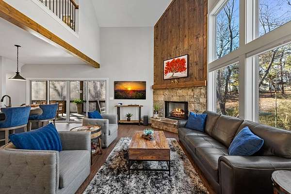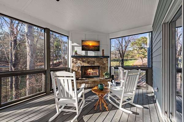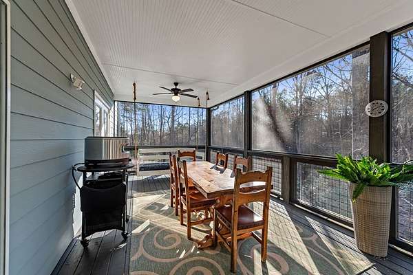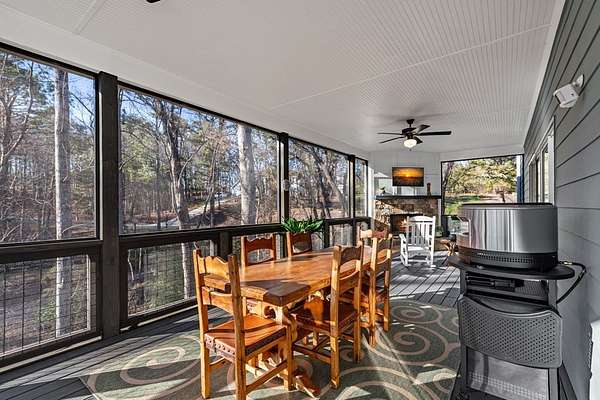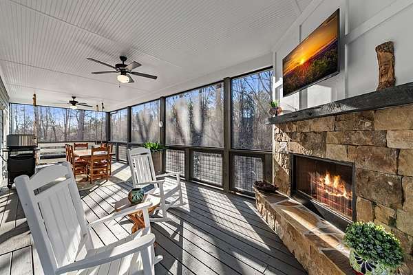 Experience mountain living at its finest in Ellijay's premier gated community, Covered Bridge Estates. This 3BR/3BA home offers serene forest views and thoughtful design throughout. The main-level master features custom closet cabinetry and a spa-inspired bath with LED mirrors and designer wall treatment. The kitchen shines with stainless steel appliances, tile backsplash, island seating, and custom built-in pantry cabinetry, flowing seamlessly into the great room with a flush-mounted TV and gorgeous fireplace. Enjoy year-round outdoor living on the screened back porch with fireplace, gas logs, custom mantle, and mounted TV. Upstairs offers a light-filled flex space or office, a secondary bedroom, and full bath with tiled shower and custom shelving. The terrace level includes a third bedroom, full bath with bidet, and a laundry room with cabinetry and shelving. The garage features lifetime flooring with custom trim, and the home includes a two-car garage plus engineered single carport. Front porch stairs lead to the side yard, while major tree clearing and nine privacy trees create space, protection, and seclusion. Lifetime Leaf Guards are installed on all gutters, and HOA approval and permits (expired) for a detached garage offer future expansion potential. Covered Bridge Estates combines privacy and convenience with a gated entrance, paved roads, and underground utilities. Minutes from downtown Ellijay, Carters Lake, vineyards, and all North Georgia has to offer, this home delivers comfort, style, and a refined mountain lifestyle. No short-term rentals ensure lasting peace and privacy.