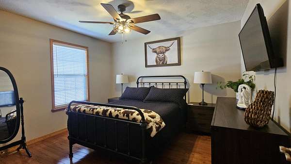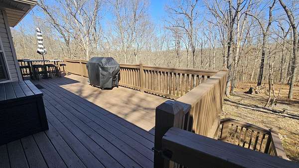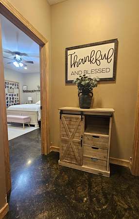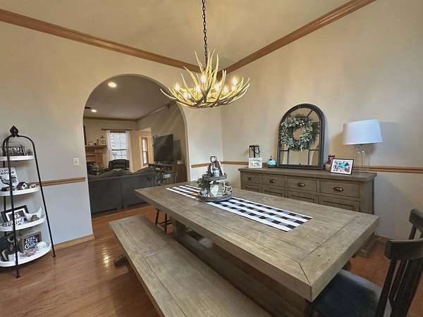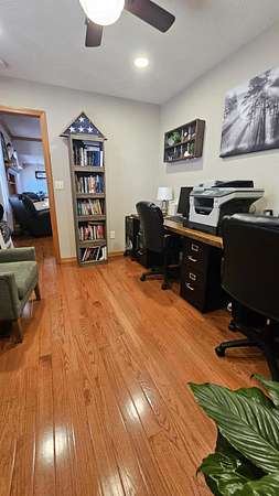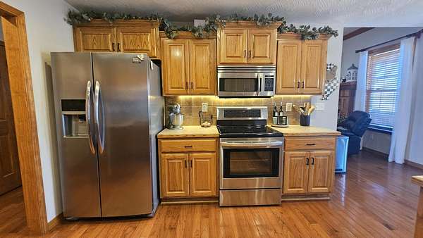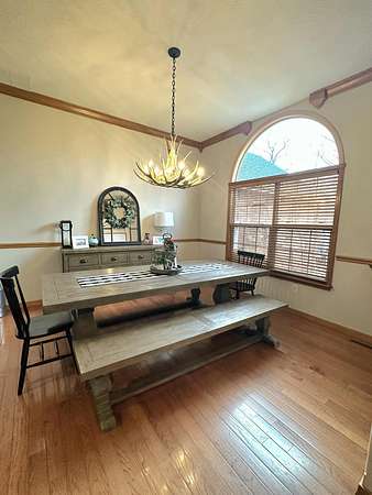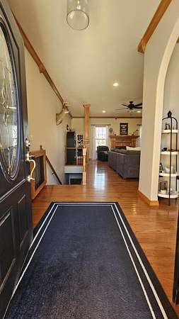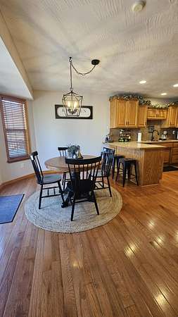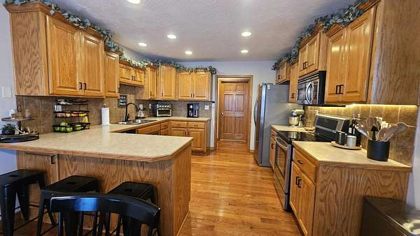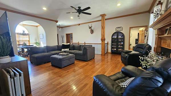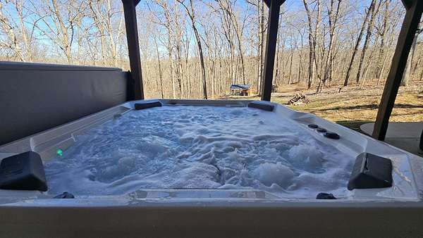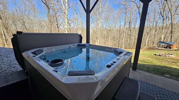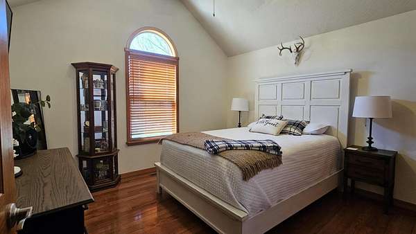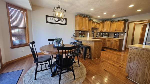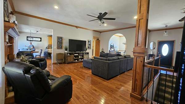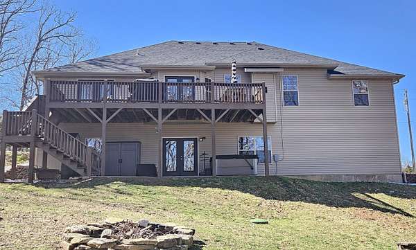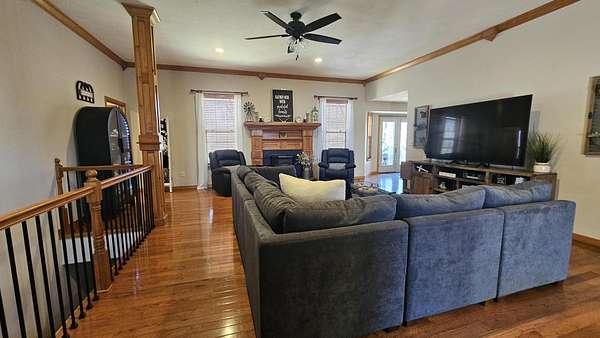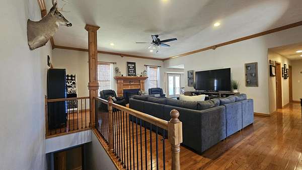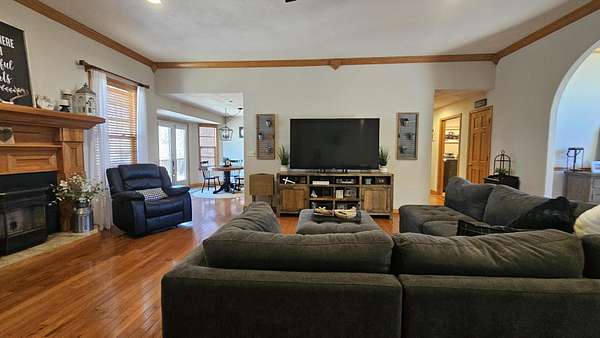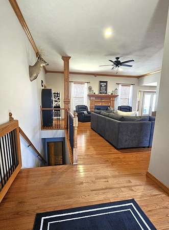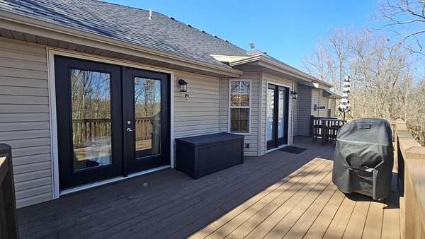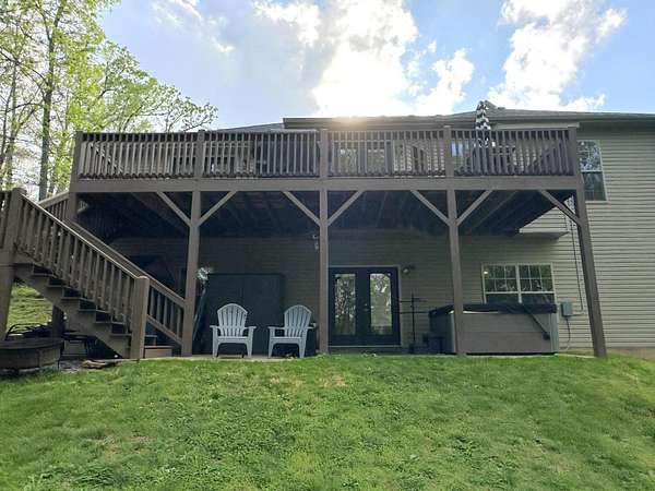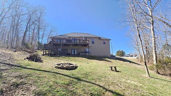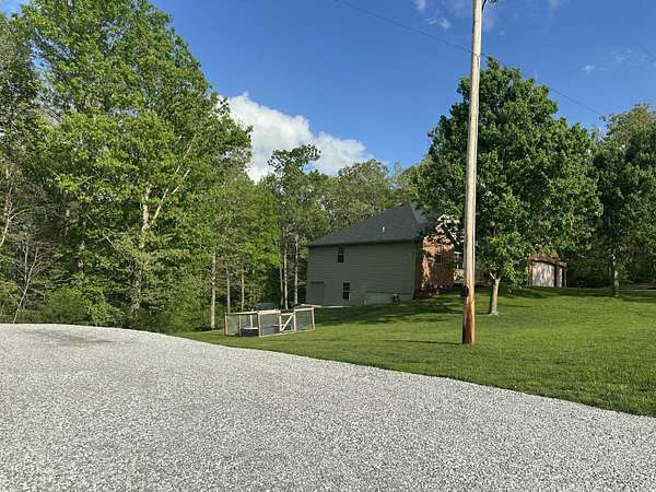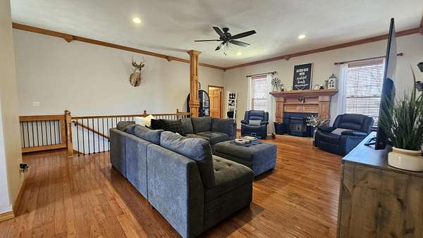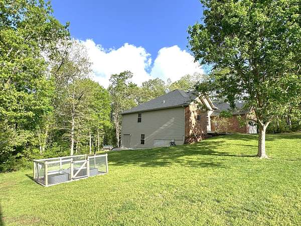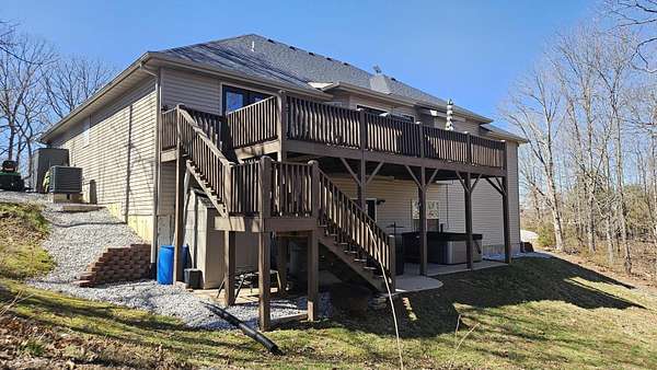 Nestled on 4 wooded acres at the end of a quiet dead-end road, this stunning 5-bedroom, 3-bath home offers the perfect blend of privacy, comfort, and country living. Built in 2007, you'll enjoy peaceful surroundings, abundant wildlife, and the tranquility of your own private retreat.The main level features beautiful hardwood flooring throughout, highlighted by a spacious living room with soaring 10' ceilings and a cozy fireplace with pellet insert. The well-designed layout includes a formal dining room, dedicated office, and a split-bedroom floor plan. The primary suite is a true escape, offering a jetted tub, walk-in shower, double vanities, his-and-hers walk-in closets, and private access to the deck.The walk-out basement expands your living space with both concrete and carpet flooring, featuring a large rec room complete with a 110'' movie screen and projector, a wet bar for entertaining, two additional bedrooms, a full bath, storm shelter, storage room, and a John Deere room.Step outside to take in the wooded setting from the expansive deck or patio, perfect for relaxing or hosting gatherings. Enjoy added amenities including a hot tub, chicken coop, and garden space for those seeking a more self-sufficient lifestyle.A 3-car garage provides ample space for vehicles, tools, and hobbies, while the secluded setting ensures peace and privacy without sacrificing convenience.This property truly offers the best of country living--space, functionality, and a place to call home.