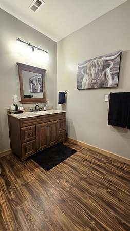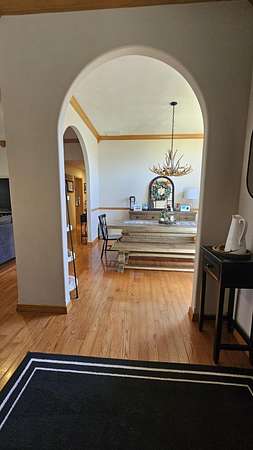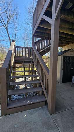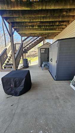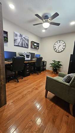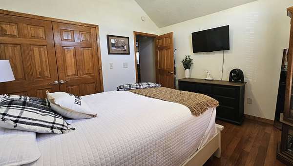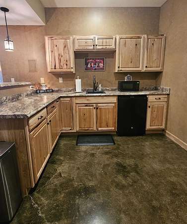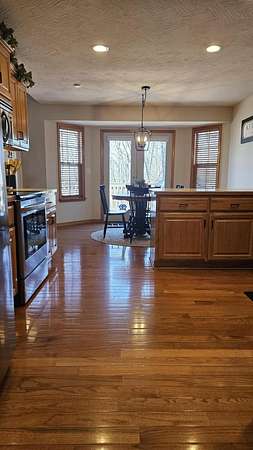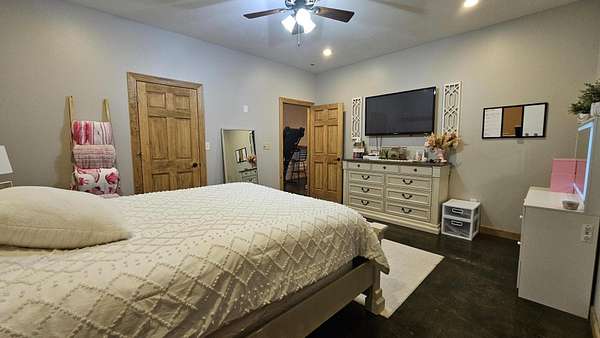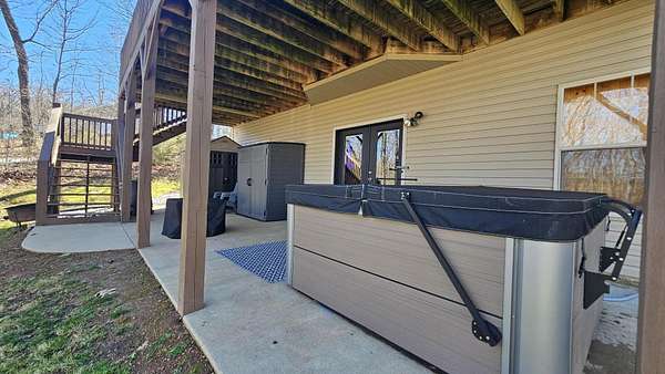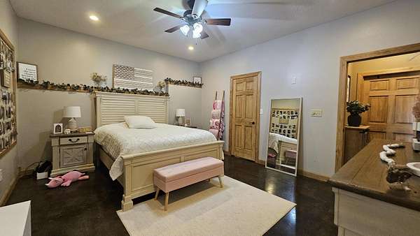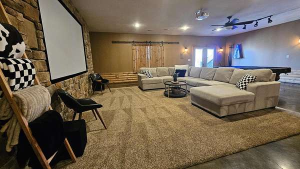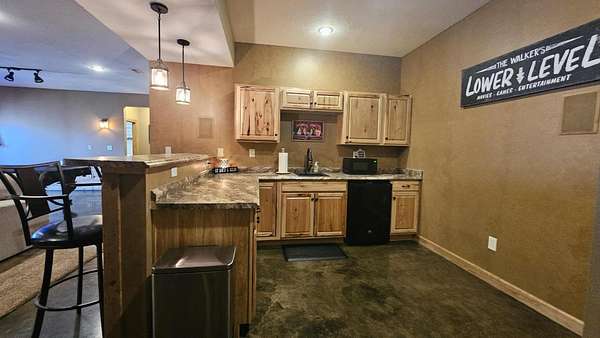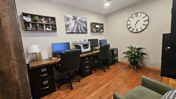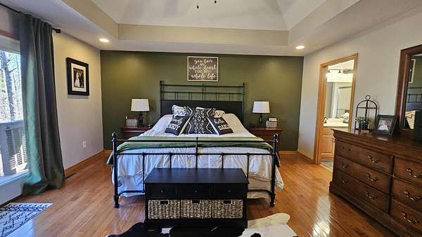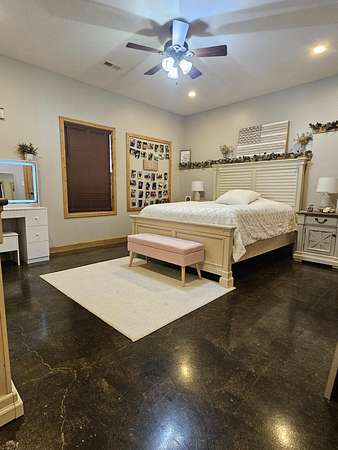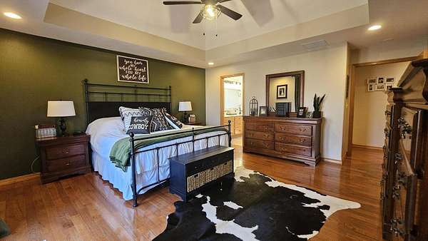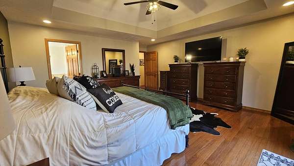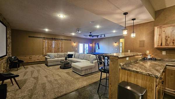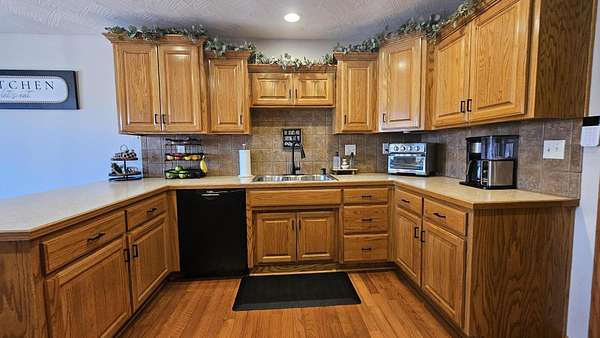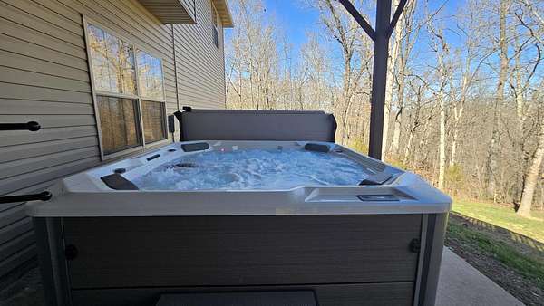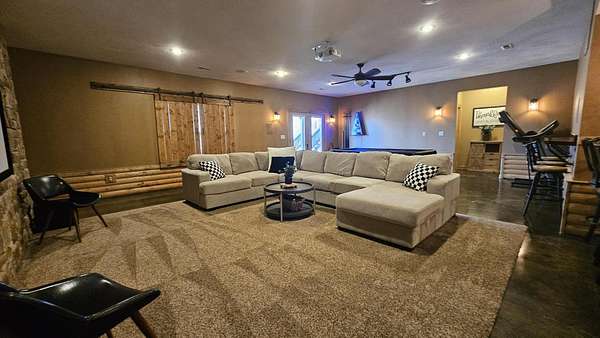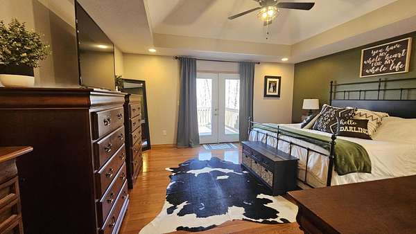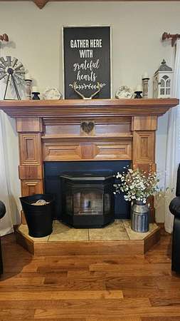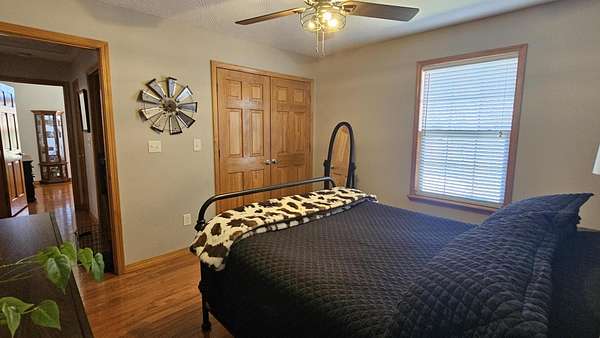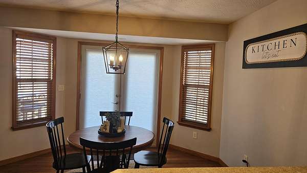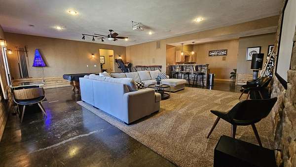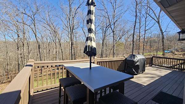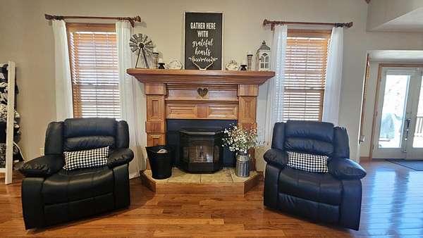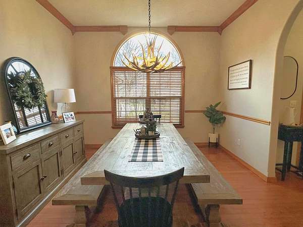 Nestled on 4 wooded acres at the end of a quiet dead-end road, this stunning 5-bedroom, 3-bath home offers the perfect blend of privacy, comfort, and country living. Built in 2007, you'll enjoy peaceful surroundings, abundant wildlife, and the tranquility of your own private retreat.The main level features beautiful hardwood flooring throughout, highlighted by a spacious living room with soaring 10' ceilings and a cozy fireplace with pellet insert. The well-designed layout includes a formal dining room, dedicated office, and a split-bedroom floor plan. The primary suite is a true escape, offering a jetted tub, walk-in shower, double vanities, his-and-hers walk-in closets, and private access to the deck.The walk-out basement expands your living space with both concrete and carpet flooring, featuring a large rec room complete with a 110'' movie screen and projector, a wet bar for entertaining, two additional bedrooms, a full bath, storm shelter, storage room, and a John Deere room.Step outside to take in the wooded setting from the expansive deck or patio, perfect for relaxing or hosting gatherings. Enjoy added amenities including a hot tub, chicken coop, and garden space for those seeking a more self-sufficient lifestyle.A 3-car garage provides ample space for vehicles, tools, and hobbies, while the secluded setting ensures peace and privacy without sacrificing convenience.This property truly offers the best of country living--space, functionality, and a place to call home.