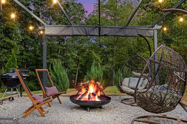 Discover a one-of-a-kind patented-design luxury treehouse nestled in the heart of Cleveland, Georgia. This stunning retreat is a proven income-producing property, on track to generate over $80,000 in annual revenue for 2025, and was part of the renowned BNB Investor Academy program, launching with tremendous success. Surrounded by the serene beauty of the Blue Ridge Mountains and the soothing sounds of a nearby creek, this upscale escape offers the perfect balance of nature and modern comfort. The home features a wellness loft complete with massage chairs, red light therapy, sauna, weights, and a massage table, creating the ultimate relaxation experience. Enjoy the outdoors with a wrap-around porch, hot tub, and firepit with grill, or unwind in the jacuzzi tub while taking in peaceful forest views. Inside, guests will find a king bedroom, loft with queen sleeper sofa, two bathrooms, a fully equipped kitchen with reverse osmosis water system, fiber Wi-Fi, and modern finishes throughout. With its new HVAC system and 2022 build, the property offers low-maintenance ownership and lasting peace of mind. Conveniently located just minutes from Yonah Mountain Vineyards and 30 minutes from Unicoi State Park, this exceptional property is being sold fully furnished and ready for new homeowners to continue its success as a high-performing luxury rental or enjoy as their own private mountain retreat.