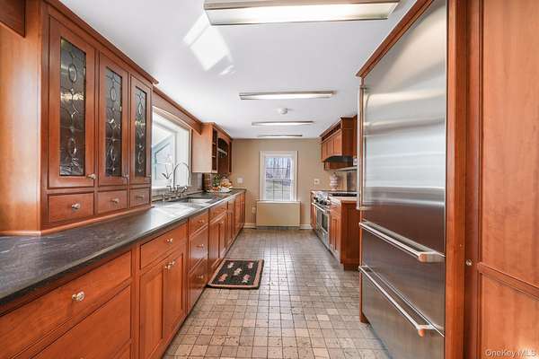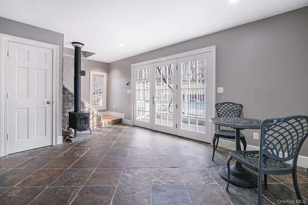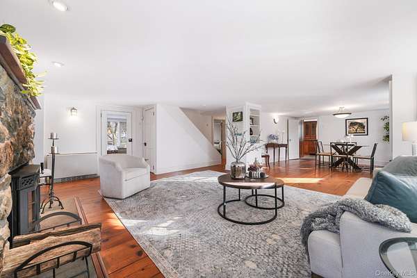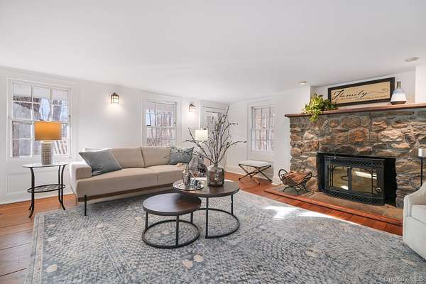 There's something inherently calming about this farmhouse. Built around 1850, it carries its history with ease-authentic, settled, and seamlessly aligned with modern living. The living room is the true heart of the home. Expansive and inviting, it's anchored by the original wood-burning fireplace, creating a natural gathering space that sets the tone for the entire house. From here, the home flows effortlessly into a formal dining room and onward to the kitchen. The kitchen is warm and thoughtfully designed for everyday living and entertaining alike. Cherry wood cabinetry, granite countertops, and professional-grade appliances-including a Wolf gas range and Sub-Zero refrigerator-strike a balance between beauty and function without competing with the home's character. A comfortable family room, full bath, mudroom, and laundry area support daily life while preserving the home's original rhythm and proportions. Upstairs, the primary bedroom offers a calm, private retreat with king-size proportions, custom closets, and access to a balcony-an ideal place to begin or end the day. Two additional generously sized bedrooms share a hall bath with a whirlpool tub, continuing the home's relaxed and livable feel. Set on approximately three acres, the property opens into a true retreat. A heated in-ground pool sits just beyond the house, framed by mature trees and landscaped grounds that create a sense of privacy and escape. A charming chicken coop adds a touch of pastoral authenticity, while the surrounding land offers space to roam, garden, or simply enjoy the quiet. The carriage house adds exceptional flexibility, offering space for guests, gatherings, or creative use, complete wit, oversized garage, and a second-floor recreation room well suited for long summer evenings or quiet weekends away. Fully fenced and surrounded by nature, the grounds invite you to slow down. A gazebo tucked into the landscape provides yet another place to pause and take it all in. Whether envisioned as a full-time residence or a weekend escape, this is a home that feels settled, intentional, and ready to be lived in-an inviting blend of history, comfort, and ease.