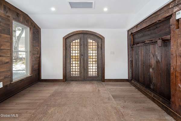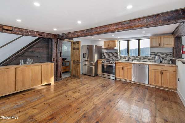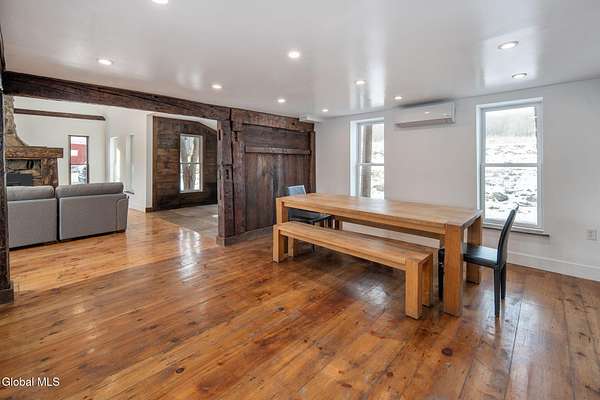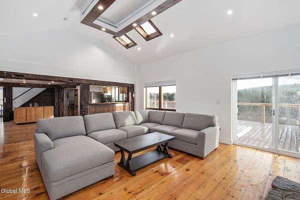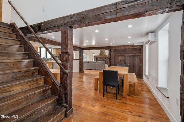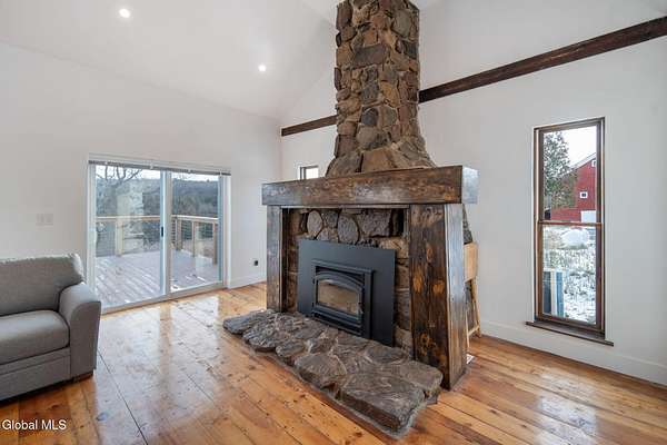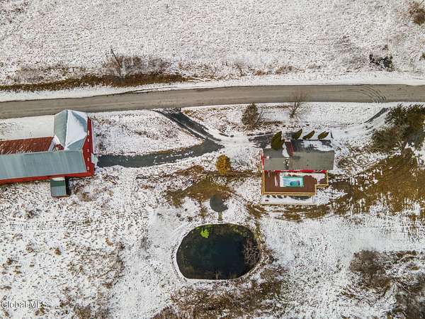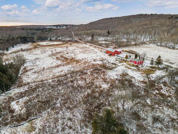 Experience refined country living on 90 acres of breathtaking countryside, where sweeping mountain and valley views create a stunning backdrop for this exceptional 1800s farmhouse. Rich in character yet thoughtfully enhanced with high-end finishes, this remarkable property blends historic charm with modern luxury. A grand foyer with soaring ceilings welcomes you inside, showcasing warm rustic details and an immediate sense of timeless elegance. The home offers 3 bedrooms and 3 full baths, including a desirable first-floor bedroom and bath, perfect for effortless one-level living. With 2,690 square feet of beautifully appointed living space, the inviting living room is highlighted by an enchanting stone-faced fireplace, creating a cozy yet sophisticated gathering space. The country kitchen seamlessly marries old-world charm and modern convenience, featuring wood floors, rich wood countertops, stainless steel appliances, and upscale finishes throughout. A bright and spacious dining area provides the perfect setting for hosting memorable gatherings. Upstairs, the second floor offers additional bedrooms, a full bath, and a sun-filled loft area that adds flexibility for a home office, reading nook, or creative space. The finished basement expands your living options with a large family room, contemporary full bath, and dedicated laundry area. Step outside through first-floor sliding doors to an open deck overlooking a luxury heated container pool with striking glass windows, offering a truly unique and modern outdoor experience. From here, take in panoramic views of the surrounding mountains and valleys. A tranquil pond and classic barn further enhance the property's charm, providing endless opportunities for recreation, relaxation, or hobby farming. This exceptional estate offers privacy, beauty, and country living at its finest.A rare and remarkable farm that must be experienced in person to be fully appreciated.
