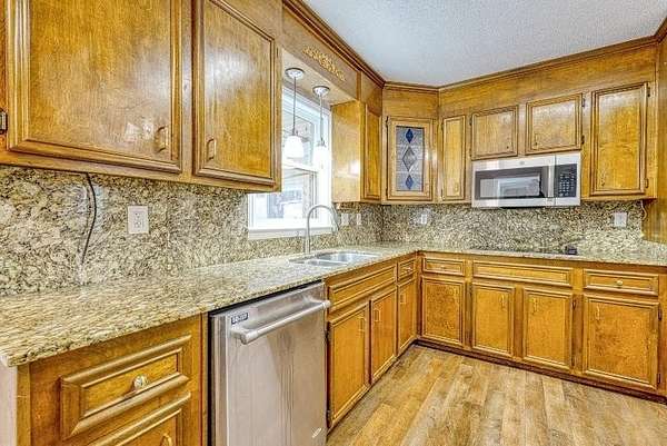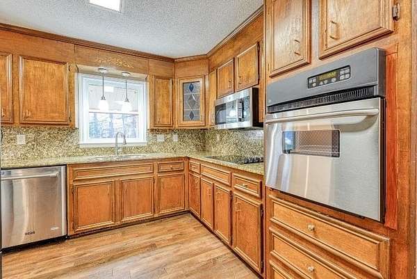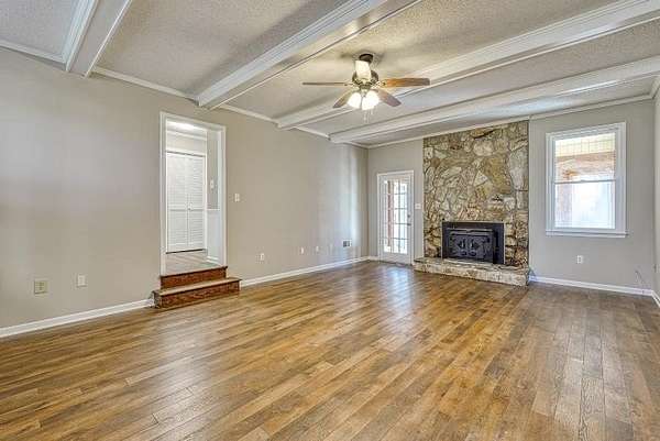 - Attic Stairs-Disappearing, Ceiling Fan, Ceilings-Blown, Countertops-Solid Surface, Fireplace, Walk in Closet