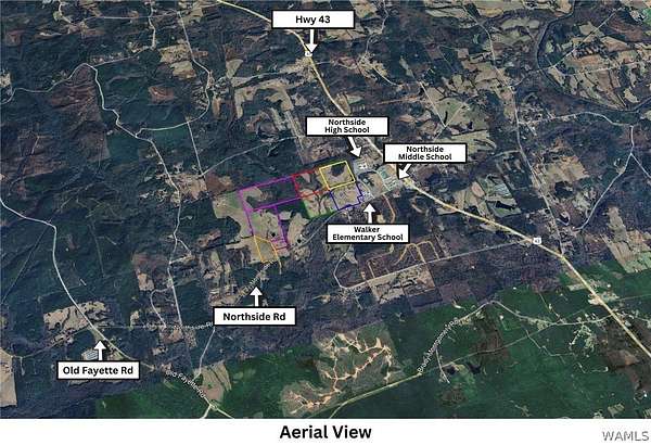 Take Hwy 43N, turn left onto Northside Rd, property begins on your right just past the school.