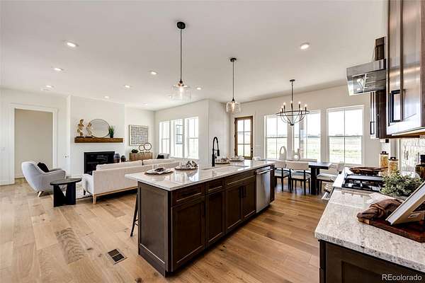 MAJOR PRICE REDUCTION- BUILDER SAYS SELL! Welcome to Creekside, this beautiful modern farmhouse on premium 35 ACRE lot is nestled along West Bijou Creek with creek access and just a short walk to the golf course. NEW CONSTRUCTION brought to you by Bradbury Companies, who love this charming small town known for its friendly neighbors and peaceful pace. Photos do not do this location justice, an amazing acreage with trees, views and privacy. Step inside THE FARMHOUSE and fall in love with the open, convenient floor plan and high end finishes including stunning hard wood floors; the perfect balance between luxury and livability. The kitchen is the statement of the great room with granite, a dual fuel range, cafe appliances and country elegant light fixtures. The pocket office and butler pantry are modern amenities you will enjoy. A split floorplan, the large primary suite and main floor laundry are privately tucked on one end with the guest suites complete with jack/jill bath are on the other. Primary suite is stunning with deck access and amazing views even from the tub. Spa like bathroom and large walk-in closet. Covered deck off backside will be your favorite retreat for coffee and sunrises or cool evening BBQs. The basement is unfinished ready for your touches, 10 foot ceilings and walk out access in a basement with tons of natural light. A high end home that is looking for its owner, this one will not disappoint even the pickiest of buyers. Lots of room to build the workshop or barn of your dreams. Front landscaping is done already. Located just minutes from I70 the location is ideal whether you commute or just like easy access to DIA. Rare find offering a peaceful country feel with upscale details—all in the country but close to small town living where community still matters. Check out Byers with convenient amenities, a golf course, its own K-12 school district and tons of charm. Seller open to buy-down or credit. Call listing agent to set your showing!