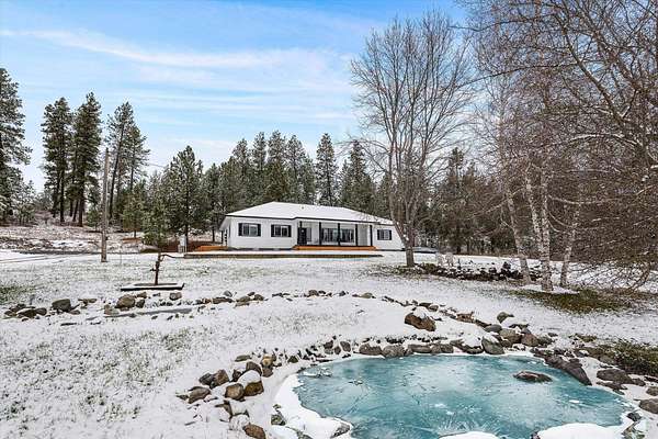 Live your dream on 2.73 acres along a peaceful stream! This spacious single-level home features 4 bedrooms, 3 bathrooms, and nearly 2,500 sq ft of comfortable living space. Enjoy a 1,400+ sq ft shop, RV parking, pellet stove, hot tub, two wells, EV charger, sauna, tanning bed, and a nearly complete solar system designed to power the entire home. Just 19 minutes from Spokane Valley-perfect for those seeking space, privacy, and endless possibilities. Three additional lots are available, bringing the total to over 10 acres with 700+ feet of year-round Rock Creek frontage. With city water and sewer nearby, there is excellent potential for future building within Rockford city limits.