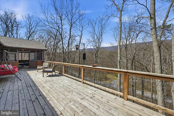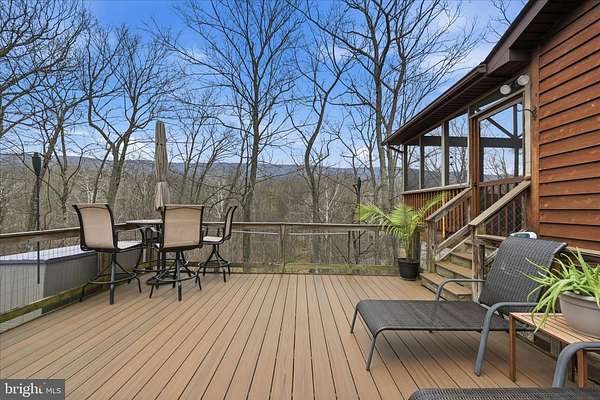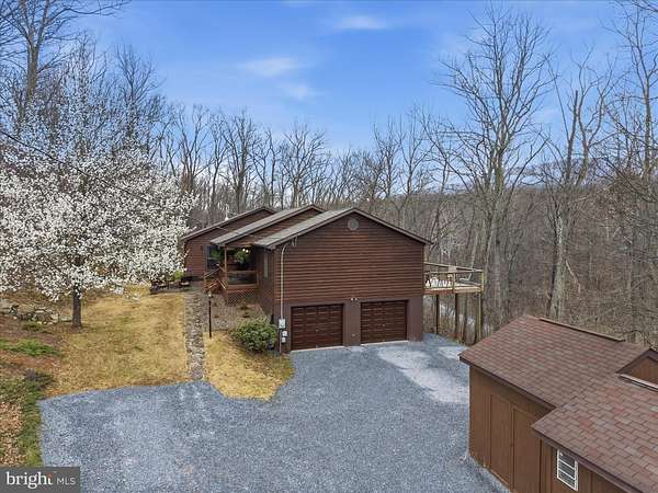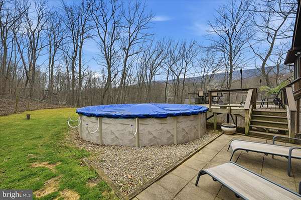 Welcome to your very own treehouse retreat surrounded by mature trees, mountain views, and exceptional privacy on 1.86 acres with a Private POOL! This property is designed for outdoor living, featuring a covered front porch, a large back deck with scenic views, and a beautifully crafted stone patio with a fire pit-perfect for entertaining or relaxing under the stars. The private pool area offers its own Trex deck for soaking up the sun, while a covered, screened-in porch provides a peaceful escape. Pet lovers will appreciate the electronic dog door with a dedicated pathway leading to a fenced yard. Inside, the Main Level offers 3 bedrooms and 2 full baths, along with a spacious and inviting layout. The 23x24 living room showcases vaulted ceilings, creating an open and airy atmosphere. The kitchen features a breakfast nook and flows into a dining area highlighted by a wood stove, adding warmth and charm. A versatile bonus room on the main level provides the perfect space for a home office, hobby room, or play area. The primary bedroom serves as a private retreat, complete with direct access to the covered, screened-in porch seamlessly connecting indoor comfort with outdoor living and the pool area beyond. There are 2 additional bedrooms and separate full bath on other side of the house. The partially finished basement expands your living space with a rec room, third full bath, and laundry area, along with abundant storage. With walk-out access to the oversized garage-complete with generator hookup and extra storage-this level offers both functionality and flexibility.