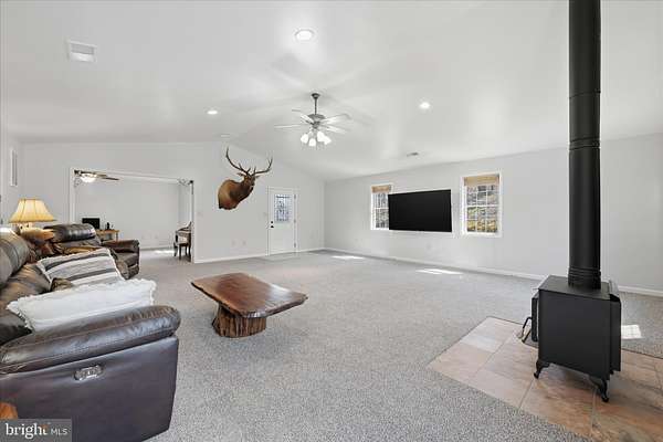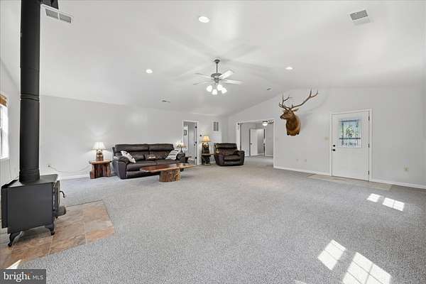 - Breakfast Area, Carpet, Ceiling Fan(s), Combination Kitchen/Dining, Entry Level Bedroom, Family Room Off Kitchen, Jetted Tub Bathroom, Primary Bath(s), Stall Shower Bathroom, Tub Shower Bathroom, Walk-In Closet(s), Walk-In Shower Bathroom, Water Treat System, Wood Stove