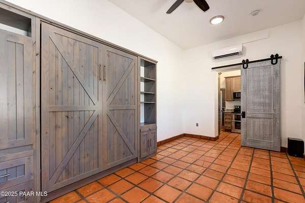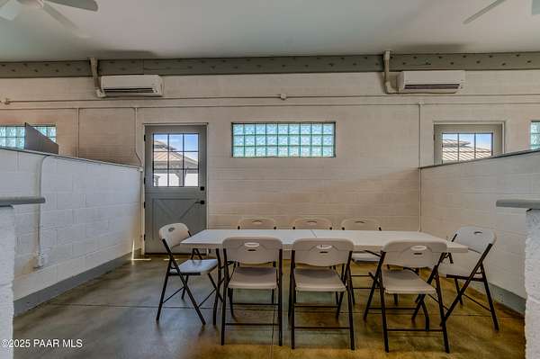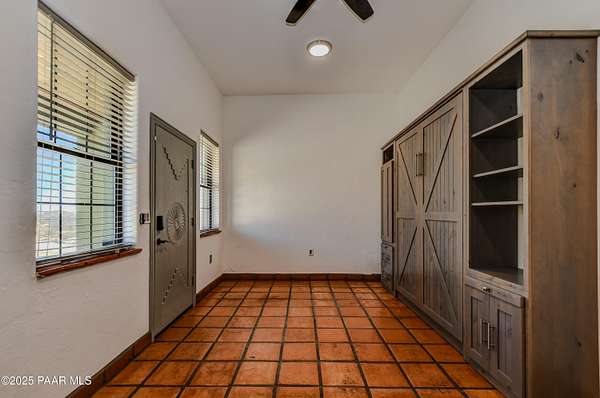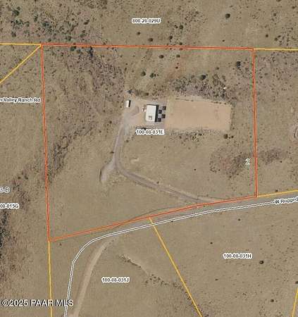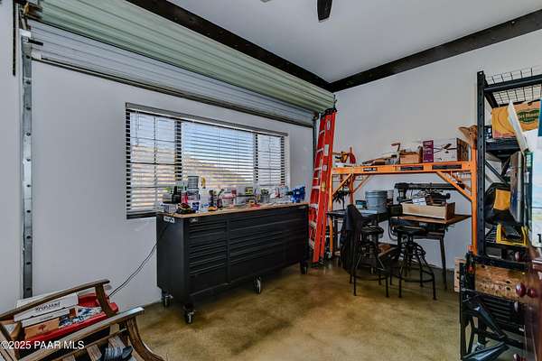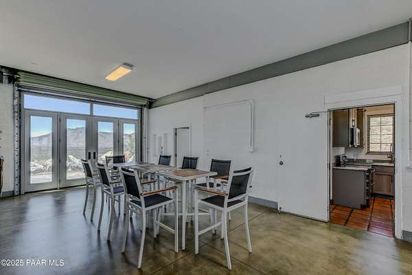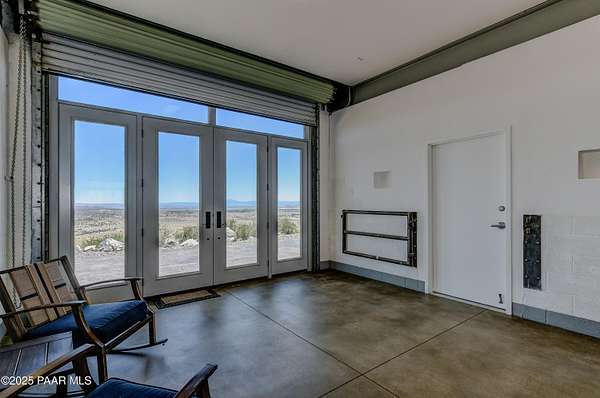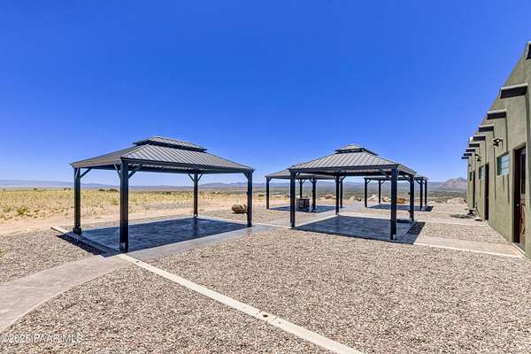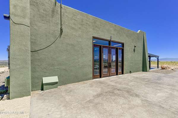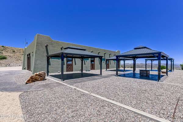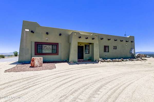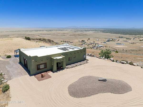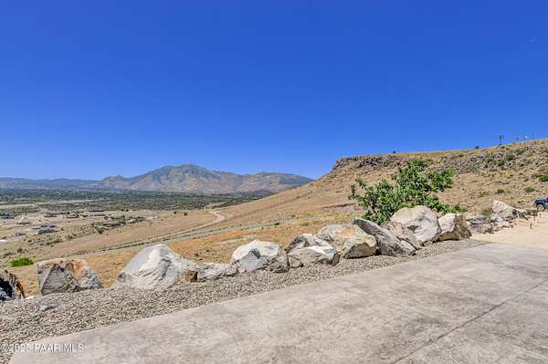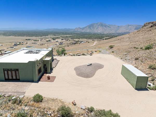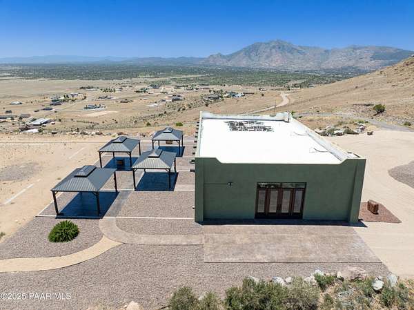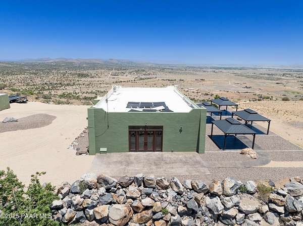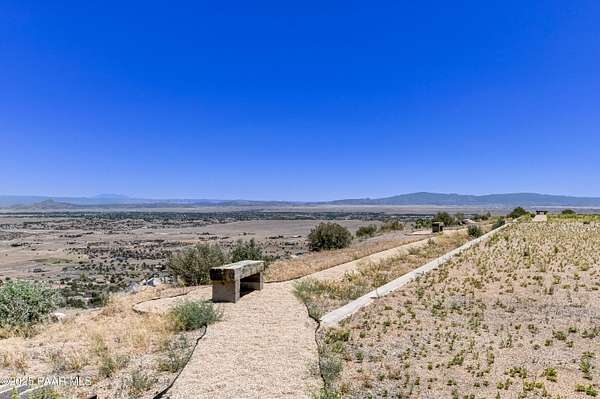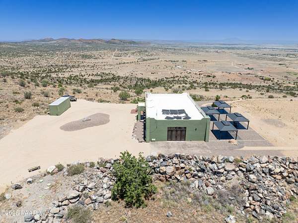 Stunning 14+ acre homesite perfect for an artist retreat or guest house while you build your dream home. Enjoy breathtaking views of Granite Mountain, Mingus Mountain, Humphrey's Peak, and more. Property overlooks Williamson Valley Ranch, is gated, perimeter-fenced, and borders state land. Build-ready with 400 amp service, owned solar (grandfathered metering), shared high-production well with private 3000-gallon storage tanks inside, and 2 large septic systems. Includes a 2,720 sq ft cement block barn/casita with large glass windows, new kitchen, mini splits, and extra storage. Four new gazebos offer outdoor relaxation. Paved road access. Rare opportunity in a prime location!