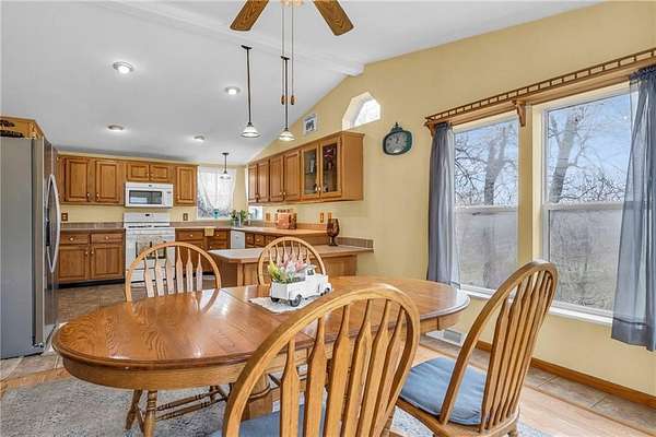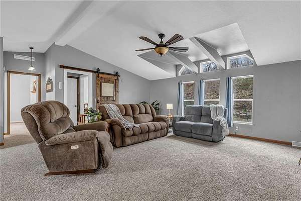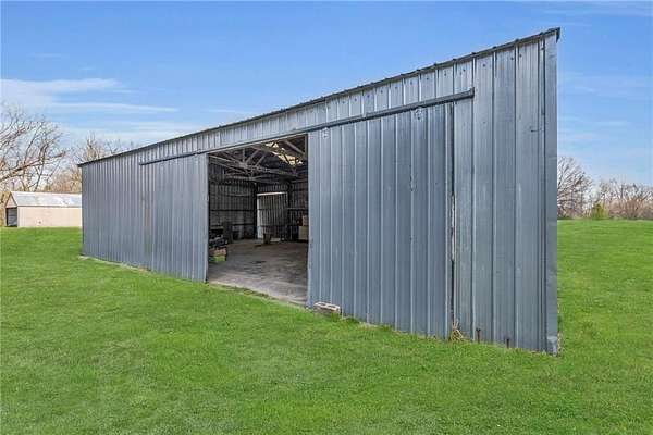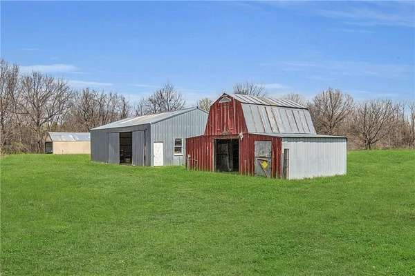*BACK ON MARKET - no fault of seller - previous buyers contingency failed * If you're dreaming of wide-open spaces and country living, this 3-bedroom, 2-bath ranch in Grain Valley offers 12.44 acres of tree-lined land with a pond, creek, and open fields perfect for a homestead or hobby farm. Vaulted ceilings and large windows fill the home with natural light, while the oversized primary suite features a walkaround closet, ensuite bath, and laundry. Recent updates include new carpet, flooring, and a 5-year-old roof. The spacious eat-in kitchen, mudroom, and multiple decks and patios provide comfort and convenience. A large shop with electricity, concrete floors, covered patio, and two oversized rolling doors is ideal for projects or storage, and a historic red barn salvaged from Unity Village adds rustic charm. The 2002 sq ft walk-out basement with natural light and sliding glass door is currently a workshop but could be finished for additional living space. A brand-new chain-link fence offers a safe area for pets or livestock, and the open acreage is ready for hay, bees, or more. Exterior and driveway were professionally power washed after photos.