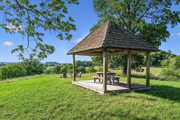 Enjoy the scenic landscape of open pastures, mature trees, and panoramic views in every direction. The surrounding community features tranquil ponds, scenic riding trails, and shared barns with over 40 horse stalls, offering an ideal setting for equestrian enthusiasts or those simply drawn to peaceful country living.