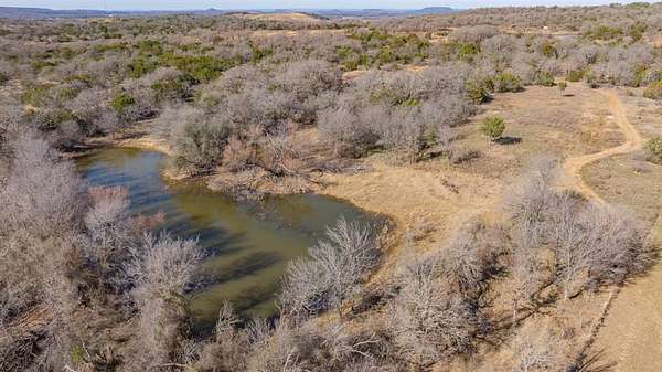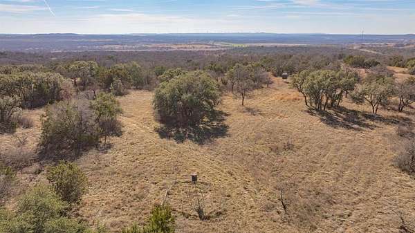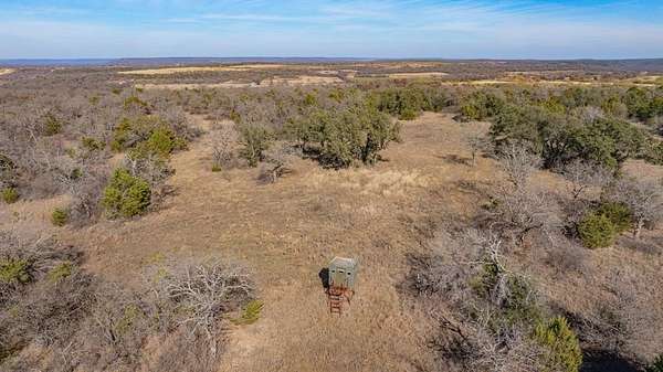 Tucked just minutes from Interstate 20 and under an hour from Fort Worth, this 145 acre ranch offers a rare blend of scenic beauty, recreational opportunity, and accessibility. The property features dramatic elevation changes of roughly 75 feet, rising from the front gate to the back of the ranch and creating sweeping hilltop views, rugged draws, and diverse terrain that feels much larger than it is. Rolling hills, native grasses, and natural cover provide outstanding habitat and endless exploration potential across the ranch. One of the standout features is a charming cabin overlooking a picturesque, approximately 1.5-acre stocked fishing tank. The cabin is approximately 500 square feet and includes two bedrooms and one bathroom, ideal for weekend stays, hunting season, or a quiet retreat. In addition to the main tank, two additional stock tanks are scattered across the property, providing reliable water sources for wildlife and livestock, as well as fishing and waterfowl opportunities. This ranch is exceptionally well suited for hunting and wildlife enjoyment. A strong whitetail deer population, supported by excellent cover and consistent water. Additional species include Rio Grande turkey, quail, feral hogs, and predators such as bobcats and coyotes. Whether you're seeking a private family getaway, a recreational ranch, or a premier hunting property with outstanding topography and views, this ranch delivers a true Texas land experience and is a must-see.