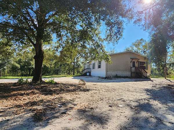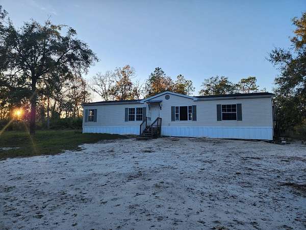 4 Wheel Drive Access Only! Looking for privacy with no visible neighbors? This 15 acre property is lightly wooded and high and dry. Located at the end of a dead end road. No HOA's and no Deed Restrictions. The 3 bedroom, 2 bath spacious home sits on a slight hill in a nice country location. Brand NEW Metal Roof! The home features a large living area, large kitchen with room for a possible island, separate pantry and laundry area, separate dining. Master bedroom has a closet in the room and an additional walk-in closet in the large master bath with tub and shower. Location is convenient to town, while still completely private. Gilchrist County is known for its "A" rated schools and natural springs, along with the Suwannee River. Deer and other wildlife abound. Call to see this one today!