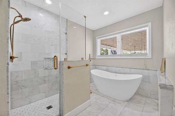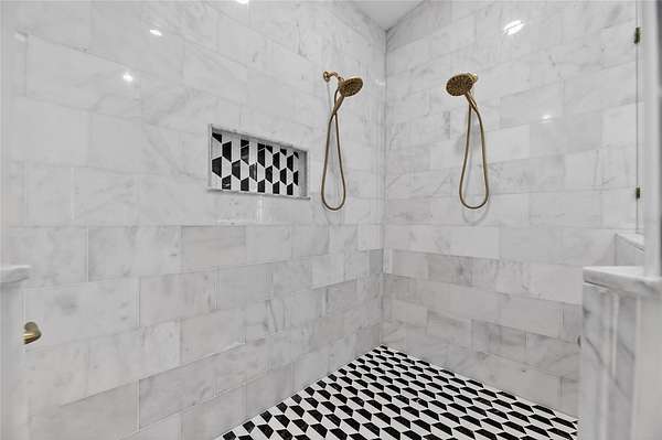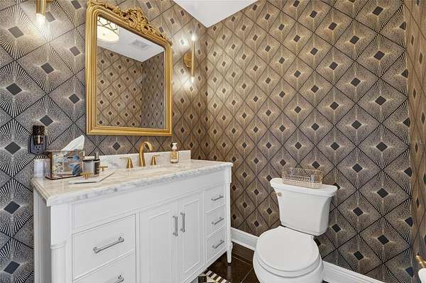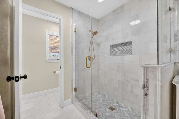 Recent improvements elevate both style and peace of mind, including a brand new roof installed in April 2025, fully remodeled bathrooms with marble finishes (2023), and new herringbone wood flooring along with updated second-floor flooring (2023).