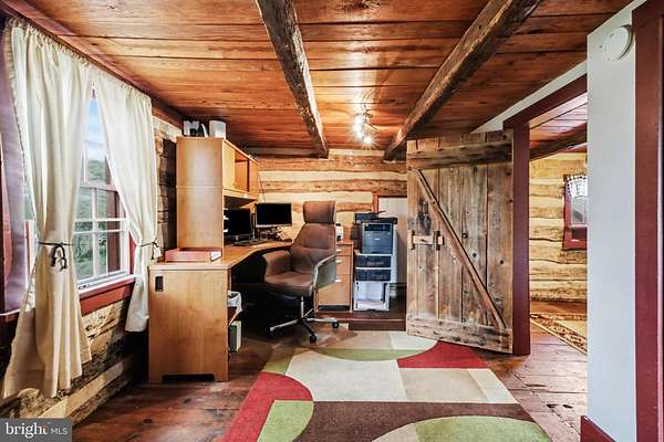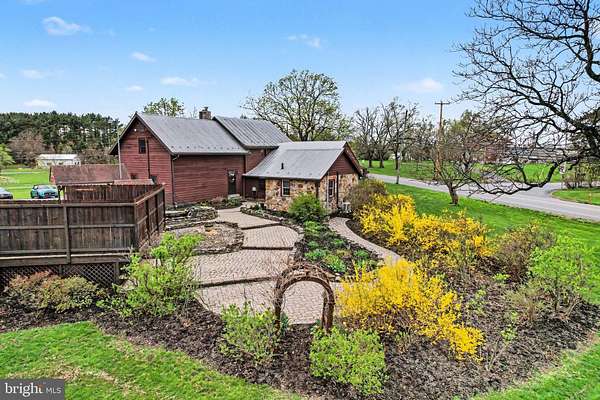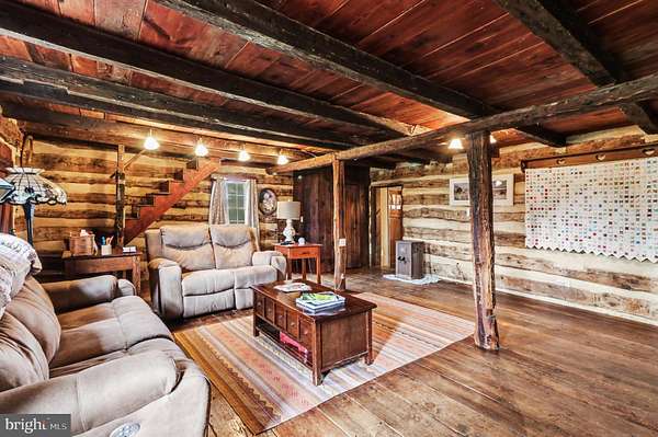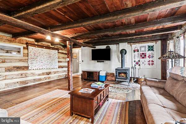 Step into a living piece of history with this truly one-of-a-kind property set on 3.84 scenic acres. At its heart is an original log cabin, thoughtfully expanded with a stone addition and a cedar addition. The result is a home that blends centuries of character with modern comfort, creating something genuinely irreplaceable. The property also includes a separate building that can easily be converted into in-law quarters, a rental opportunity, or any number of options (man cave, teenage hangout, gaming space, crafting space, music studio, art studio....the possibilities are endless!). This charming building features a main open space and two separate rooms that can be used as bedrooms, if desired, as well as a full bathroom. The space is carpeted throughout and equipped with its own mini-split system, a separate electric panel, and a small hot water heater. Electric service is shared with the main home and billed together. Outdoor features invite both relaxation and entertaining, including extensive hardscaping, a koi pond, an above-ground pool with a new liner, and a spacious deck ideal for grilling and gathering, with a hookup for a hot tub. A hot and cold water faucet is located at the back of the home, and the well at the front of the property is currently functional. Inside, the original log living area showcases exposed beams, hardwood floors, and a wood stove approximately ten years old. Custom replacement mahogany windows are installed throughout the log portion of the home, bringing in natural light while honoring the home's historic character. An original door with a skeleton key adds a rare and charming detail. The primary bedroom suite offers wood floors, a mini-split system, two closets, and an en-suite bath with a walk-in tile shower with extra jets, a clawfoot tub, and a single vanity. A stackable washer and dryer are conveniently located within the suite. The custom kitchen, completed approximately four years ago, features a large island, custom cabinetry, granite countertops, a farmhouse sink, and its own mini-split system. Also on the first level, the back entry provides access to an additional bedroom that includes a mini-split system, a California Closet system, and the home's electric panel. A full bathroom with a walk-in tile shower is also located in this area. Upstairs, the second floor offers a sitting area or flexible space with access to the attic, as well as a large storage room above the kitchen that could easily be converted into a unique finished space, along with a separate room currently used as a home office. A second-floor addition includes two bedrooms with wood floors and a full bathroom featuring a tub, a walk-in shower, and a pedestal sink. The home features a tin roof, oil-fired radiator heat with seven zones, a furnace replaced approximately three years ago, multiple mini-splits, a water conditioning system with UV filter, a hot water heater replaced in 2020, and a well pump and tank installed in 2007. The septic system was replaced within the last eight years and includes a sand mound. This is not a cookie-cutter home. It's a rare opportunity to own a property where history, craftsmanship, and thoughtful updates come together in a way that simply cannot be replicated. You really MUST tour this home to fully appreciate all that it has to offer.