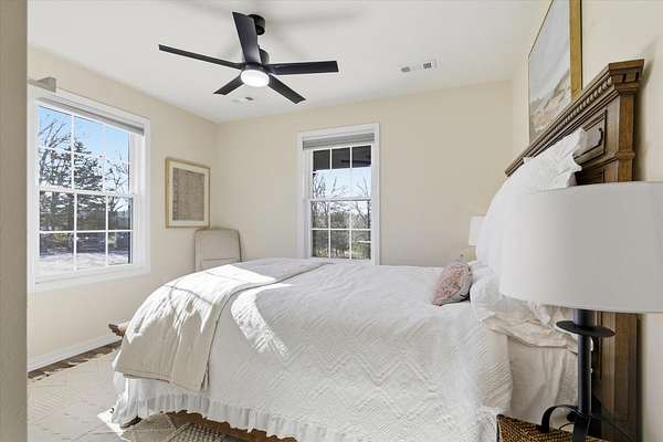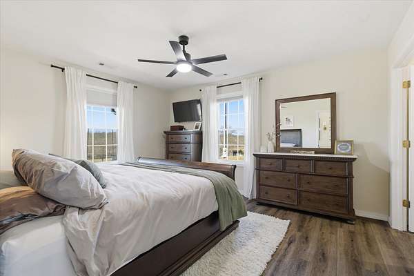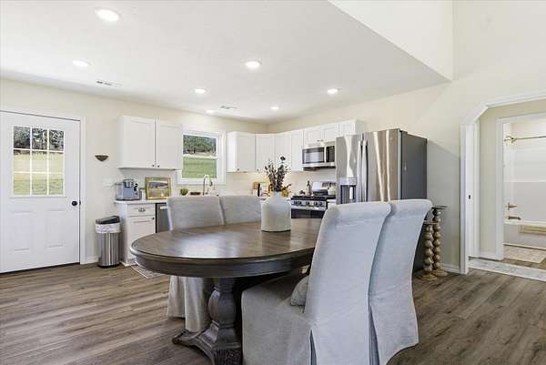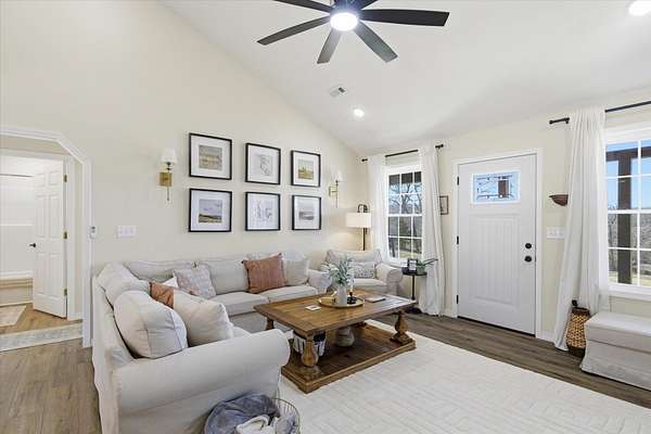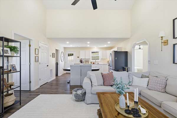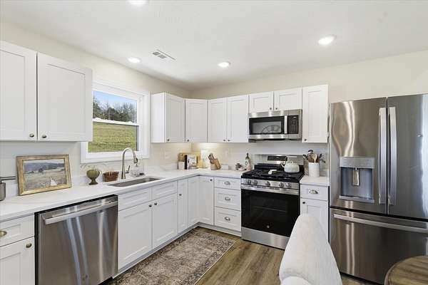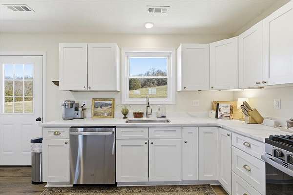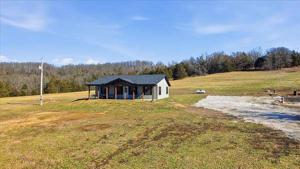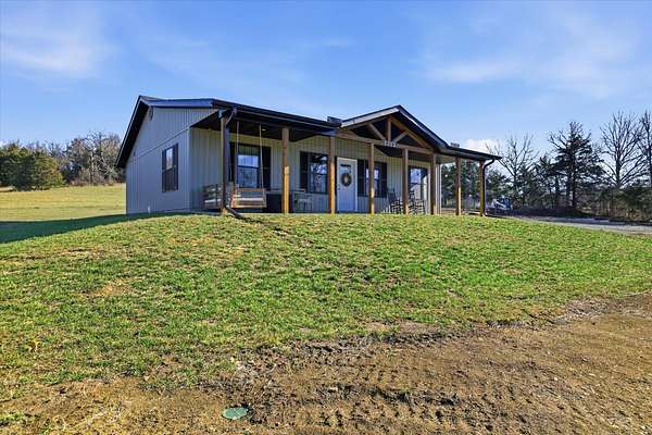 Discover the perfect blend of charm and modern living in this breathtaking modern farmhouse, uniquely positioned on 7.8 picturesque acres! With 3 spacious bedrooms and 2 stylish bathrooms, the open-concept design boasts soaring vaulted ceilings and an abundance of natural light, creating an inviting atmosphere that feels remarkably expansive. The chef-inspired kitchen is a dream, featuring sleek stainless steel appliances and elegant white cabinetry with timeless Quartz counter tops, seamlessly flowing into the expansive living area--ideal for entertaining or family gatherings. Step outside to savor your morning coffee on the inviting timber-framed front porch, where you'll be surrounded by nearly 8 acres of rolling pastures and serene private woods. This exceptional property is perfect for hobby farming, outdoor adventures, or simply unwinding in your own tranquil oasis. Embrace the lifestyle you've always dreamed of! This Seller has done $30,000 in upgrades to this home and it truly shows. Upgrades are, Flooring, counter tops, ceiling changed, all beautiful Gold Bronze fixtures, ceiling fans, windows, hardy vertical vinyle siding, Lanudry room cabinets and butcher block counter top, custom blinds, Block walls and dirt work ready fo a 30X40 shop to be built. Burn pit ready for these cool nights.