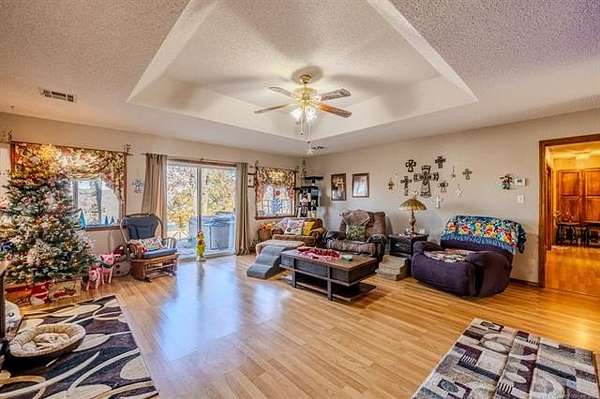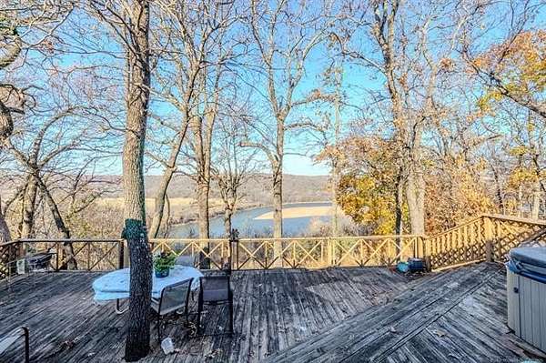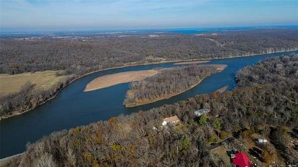 Experience breathtaking bluff-top living with one of the most impressive panoramic views of the Neosho River you'll find in the Fort Gibson area. This home sits high above the river on a private 2.6-acre setting, offering a rare combination of elevation, scenery, and privacy. From the moment you step onto the back deck, the uninterrupted river landscape becomes the heart of the property; calming, expansive, and truly unforgettable. The multi-level deck is thoughtfully designed to step down in sections so the view remains completely open and unobstructed. Whether you're relaxing outdoors or enjoying the scenery from inside, the bluff-top vantage point makes this home feel like a peaceful retreat. Set back from the road with a circular (U-shaped) driveway, the property features custom entry gates, uniquely designed by the seller's late husband adding a special, one-of-a-kind touch you won't find anywhere else. Inside, the home offers tall ceilings, abundant built-ins, and large bedrooms, each with a walk-in closet. The primary suite includes its own private bath and walk-in closet. The bright sunroom, surrounded by windows, provides a flexible space to enjoy morning coffee, hobbies, plants, or quiet time while still taking in the elevated river view. The kitchen includes granite countertops, a spacious peninsula with bar seating, and an adjoining breakfast nook. A formal dining room offers additional space for gatherings. The living room features large windows that capture the bluff-top scenery, with a gas-lit, wood-burning fireplace adding cozy ambiance without distracting from the view. Outside, the attached 2-car garage includes two separate storage rooms plus attic storage above. The property also includes two wired shops, a 30*40*16 RV-height shop with a 30-amp plug, and a 24*30 shop with loft storage. Homes with this level of privacy, storage, and a true bluff-top river view rarely come on the market. This is a special opportunity you won't want to miss.