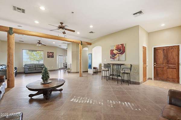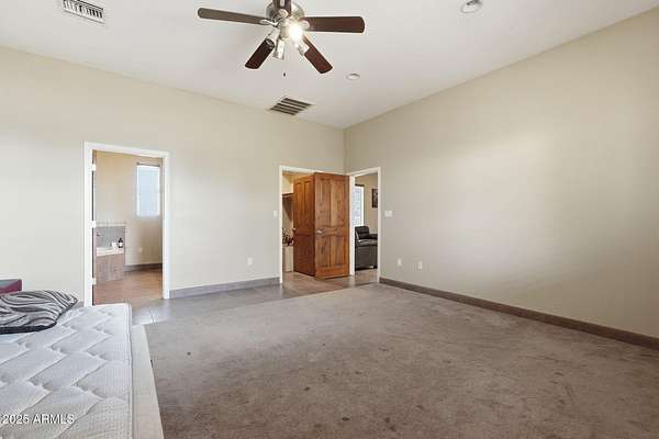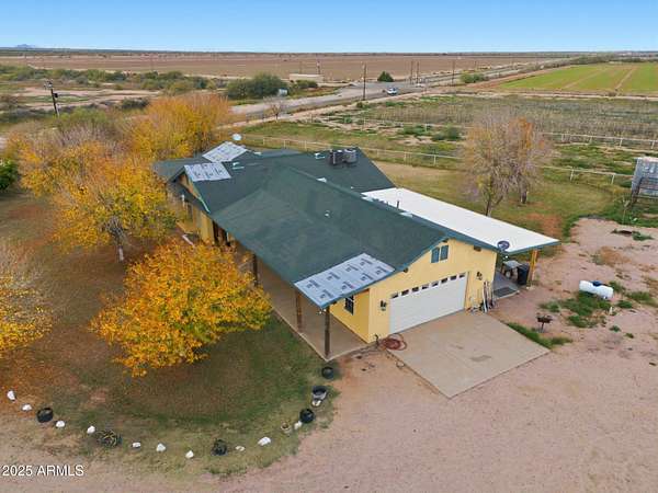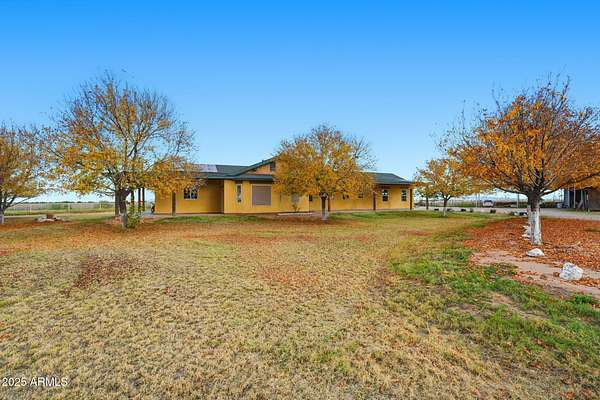 Est $3,290/moOver 10 irrigated acres, no HOA, peaceful serine countryside in Casa Grande. Custom home with 3 oversized bedrooms and 2 full baths. Open great room floorplan with exposed beam, high ceilings and tons of natural light. Upgraded tile flooring throughout and carpet in bedrooms. Custom high end cabinetry, sleek black appliances. Primary en-suite with jetted tub and double vanities. Property boasts large outbuilding, garage and lots of space for agriculture, livestock or whatever you desire! Adjacent lots also for sale. Total of 33 acres.
