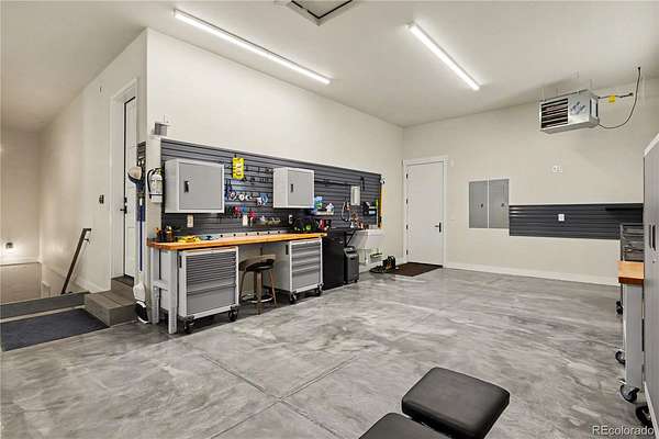 - Concrete, Finished Garage, Floor Coating, Heated Garage, Insulated Garage, Oversized, Oversized Door, Tandem