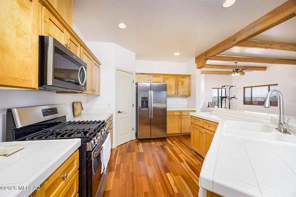 - Beamed Ceilings, Kitchen Island, Walk-In Closet(s)