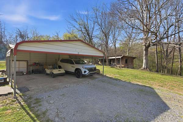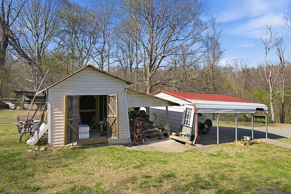 5-acre property. .Built in 1930 with solid oak framing, this home has already been taken to the studs with major improvements completed—new drywall, updated electrical with dimmers, and a renovated kitchen featuring granite countertops, ZLINE gas range with double ovens, dishwasher, microwave, and in-ceiling Bluetooth speakers. Original hardwood floors and a large room layout reflect the home’s character. New roof in 2025. Some windows replaced; others need updating. HVAC in place with the upstairs vent, but will still require supplemental cooling. Home, while fully functioning, could use your touch on finishing the main bath and the laundry room. Plus, there is an opportunity to add a bathroom upstairs. The land is a standout: 5 usable acres with fruit trees, a large plowed garden, raised beds with irrigation, a greenhouse with irrigation, a chicken coop (chicks can remain), and a carport. Underground utilities in place, which can help keep the power on during ice storms. Located approx. 30 minutes to Nashville, 12 miles from Charlotte, 12 miles from White Bluff, and 5.5 miles from Ashland City, near the Harpeth River and boat ramps. Significant work completed with room to add value—ideal for investors, flippers, or buyers seeking a homestead lifestyle. Selling As Is.