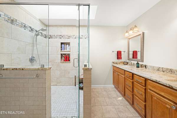 Throughout the home, you'll find beautiful hardwood maple flooring that adds a touch of continuity to the living spaces. The master suite area is a true retreat, a spacious space boasting of a custom tiles walk in shower, a soak bath area, and his/her sinks.