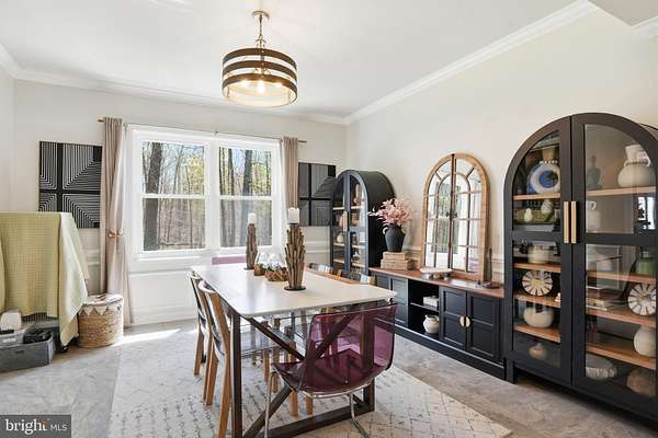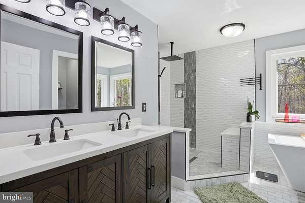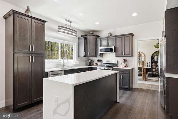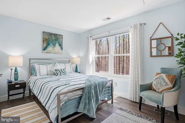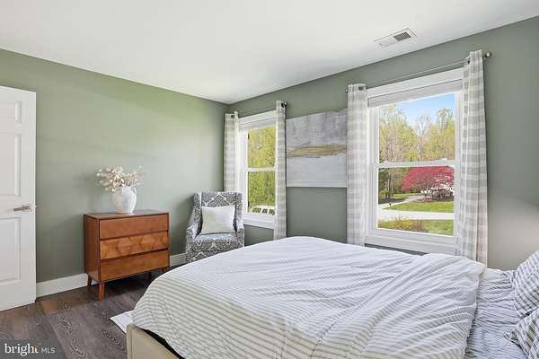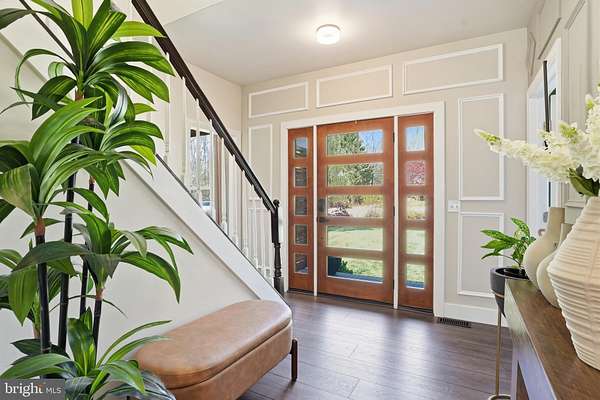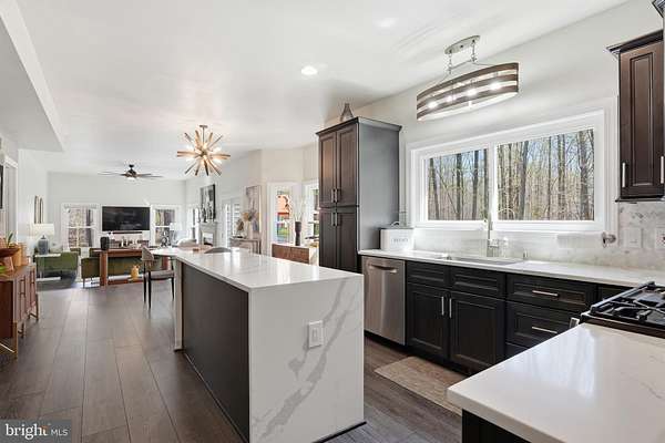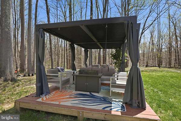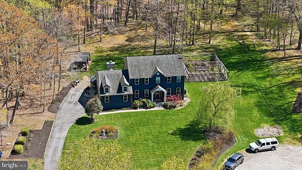 Welcome to 3205 Ivy Way - a beautifully reimagined colonial set on a private, wooded lot in the heart of Harwood, Maryland. From the moment you arrive, the home commands attention: a striking navy-blue exterior with warm cedar accents, a custom address fountain at the entry, and lush, manicured grounds framed by mature trees. The sweeping driveway leads to an attached 2-car garage complete with a built-in drop zone - a practical and polished place to land after a long day. Step through the custom double wood-and-glass front door and you're immediately greeted by a welcoming foyer with board-and-batten wall detailing, brand new luxury vinyl plank flooring, and a dramatic cascading linear chandelier that draws the eye upward. The main level has been thoughtfully designed for the way people actually live - offering multiple distinct spaces without ever feeling disconnected. A sun-filled den with French doors off the entry provides the perfect private retreat for working from home, with views of the front yard and easy access to the foyer. The formal living room is a refined, light-filled space ideal for entertaining, while the separate formal dining room impresses with wainscoting, crown molding, tile floors, and a bold statement light fixture. The heart of the home is the open-concept kitchen and family room - the kitchen stuns with rich espresso cabinetry, a quartz waterfall island, stone tile backsplash, gas range, and stainless appliances, while the adjacent breakfast area bathed in natural light flows seamlessly into the family room, where a wood-burning fireplace with painted surround anchors the space. French doors off the family room open directly to the back deck, making indoor-outdoor living effortless. Rounding out the main level is a jaw-dropping powder room - a true design moment featuring bold geometric gold-veined wallpaper, a statement green vanity with brass hardware, and an arched mirror with sconce lighting on each side. Upstairs, the primary suite is a true sanctuary, featuring a stunning luxury American walnut slat wood wall panel accent, a ceiling fan, and a spa-level bath that stops you in your tracks - dual vanities with herringbone-front cabinetry, quartz counters, matte black fixtures, an oversized walk-in rainfall shower with designer mosaic tile accents, built-in niches, and a freestanding soaking tub framed by a wall of windows overlooking the treetops. Three additional bedrooms - each with its own personality and generous closet space - and a well-appointed shared bath complete the upper level. The spacious unfinished basement offers a blank canvas brimming with potential - whether you envision a home theater, gym, game room, or additional living space, the footprint is ready for your vision, and a wood stove already in place adds warmth and character to whatever comes next. Outside, the backyard is an entertainer's dream unlike anything in the neighborhood: a wooden deck with string lights leads to a stunning custom pergola set on its own dedicated wood platform, fully outfitted with a louvered aluminum roof for year-round use, flowing privacy curtains, and a full lounge seating area - all surrounded by a lush, private tree line that makes it feel like your own secluded retreat. For those with a green thumb, a large custom-built garden enclosure with raised beds and electric fencing offers the ultimate setup for growing your own fruits, vegetables, and herbs in true farm-to-table fashion. Solar panels add modern efficiency to the package. Located just 14 miles from Annapolis, 30 miles from Washington D.C., and within easy reach of the Chesapeake Bay, 3205 Ivy Way is southern Anne Arundel County living at its absolute finest.