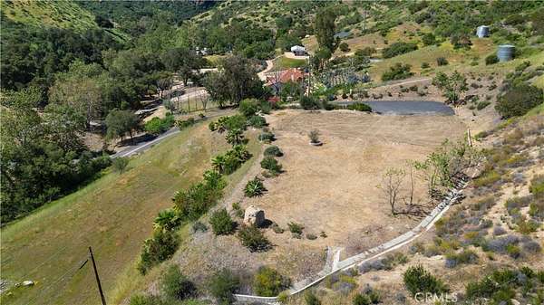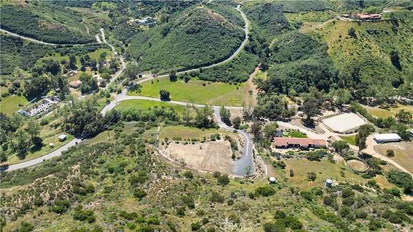 The property includes architectural plans for a 5416 sq. ft. estate that received Zoning Conformance Review approval from LA County, with building permit in the works. This versatile parcel includes significant infrastructure including a paved driveway and creek crossing, utilities at the pad include water, water tank, electricity, telephone, propane, septic, retaining walls, grading, and drainage. The second pad provides other development opportunities including potential ADU/guest house, tennis/sports court or stables.