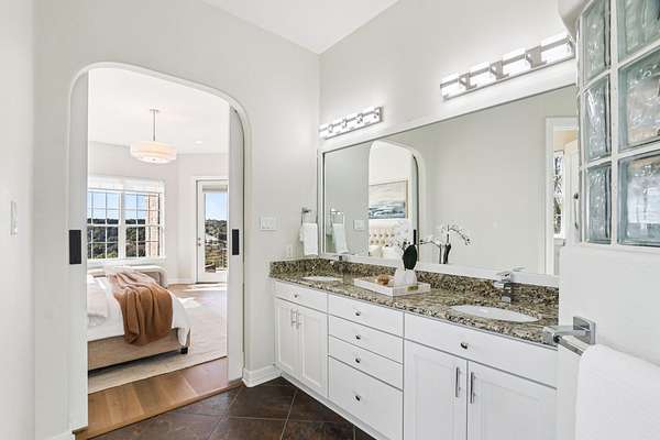 - Ceiling-High, Double Vanity, Entrance Foyer, Granite Counters, In-Law Floorplan, Kitchen Island, Multiple Dining Areas, Multiple Living Areas, Open Floorplan, Pantry, Primary Bedroom On Main, Soaking Tub, Two Primary Suties, Walk-In Closet(s)