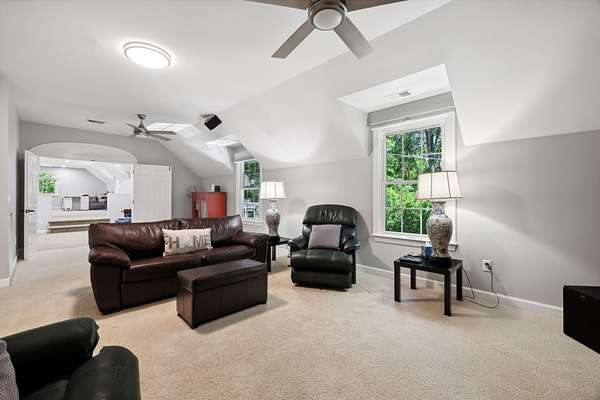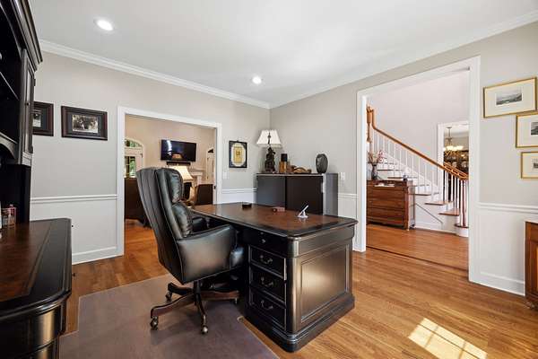 Inside, you'll find an expansive floor plan with a spacious living room, a gourmet kitchen, a formal dining area, main level primary bedroom, and incredible screened patio. Highlights include a cozy family room, a home office, and a massive versatile bonus room.
