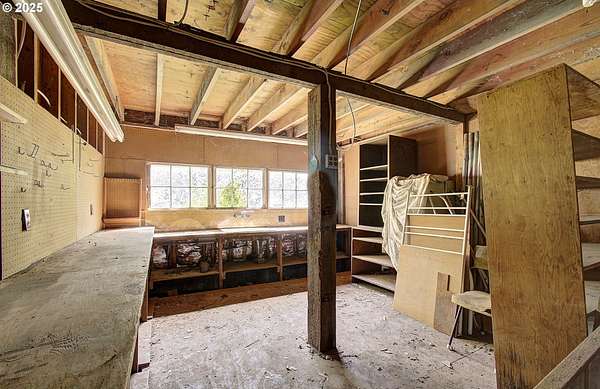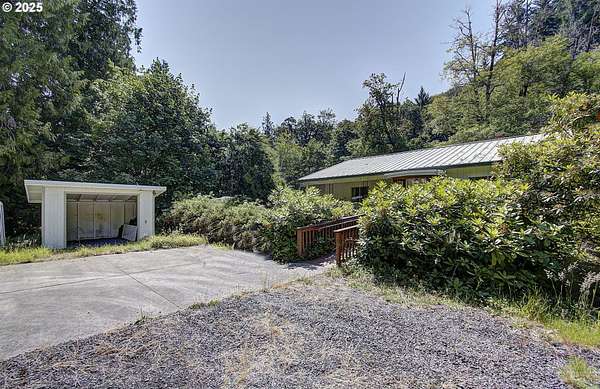 Welcome to a permaculture paradise, a 16+ acre property that's ready to embrace new owners with a vision for living in harmony with the land. Thoughtfully designed and built for the ages, it is a must-see to truly appreciate with its unique charm and potential. As you approach the home, you'll notice it's an efficient design, with a simple, purposeful floor plan that maximizes every inch of space under one metal roof. The unassuming front entrance is just a few feet from a concrete parking pad, woodshed, and ADA-accessible entry ramp. The central fireplace in the living room creates a warm, inviting hub for gatherings. The dining room is equally bathed in natural light from the large windows and offers tree-house-like views, framing the lush grounds and the gentle creek beyond. Downstairs, the basement is a homesteader's dream, with three exterior access doors into workshop, storage, and food processing rooms. Shelving and built-ins galore are ready to be put back to work for your projects. Dozens of fruit trees, edible plants, and even the picnic tables dotting the landscape invite you to bring the dream back to life.The south portion of the property, a heavily treed slope, enhances the private, cozy feel, with wildlife frequently passing through and across the lower creek area, adding to the serene ambiance. The fertile areas near the creek are ideal for continued blueberry farming. Closer to the home, gardening spaces and the natural spring provide water for your self-sufficient lifestyle. The shop is easily accessible and has all you need to work on complex projects endlessly- 220V electric, full bathroom, and air, too!From the top of the hill down to the shop, from the berries to the creek, every element of this property was built up and built around the land with purpose and care. It's a homestead that rings true, offering privacy, productivity, and a deep connection to nature.