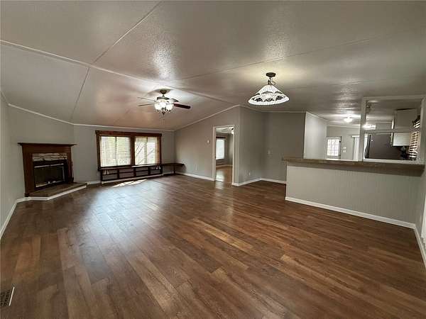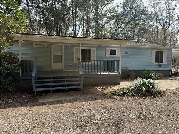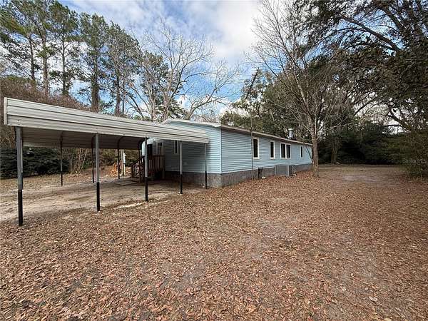 Welcome to this spacious 3 bedroom 2 bathroom doublewide mobile home located on 3 acres between Gainesville and LaCrosse. This home boasts a large covered front porch, perfect for enjoying your morning coffee. The great room, completed with a wood burning fireplace, is perfect for entertaining or relaxing. The home also features a pantry for extra storage and a breakfast nook for casual dining. The split bedroom plan offers privacy, and each bedroom comes with walk-in closets for ample storage. The flooring is a mix of wood laminate and luxury vinyl plank, adding a touch of elegance. The home also comes with a detached 2-car carport. Please note, the outbuilding is excluded. Pest control and lawn service are included, ensuring a hassle-free living experience. This home is perfect for those who value and convenience with the privacy of being away from town.