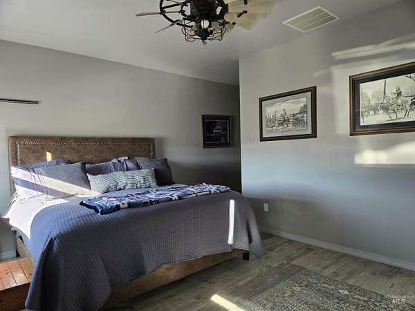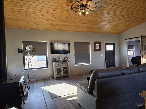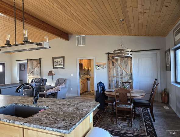 Panoramic 40-acre ranch with sweeping views of Cuddy and Council Mountains. The land is thoughtfully laid out for livestock, featuring four cross-fenced pastures, two runoff-fed ponds, and a high-yield artisan well producing over 75 GPM that supplies the home and multiple stock water troughs. Corrals are heavy-duty galvanized panels. This lovely country home, built in 2021, offers 2 bedrooms and 2 bathrooms with quality finishes including granite countertops, premium cabinetry, and custom barn doors. Leasing the pastures is a possibility for added income. Property qualifies for a split and is eligible for a first-come, first-served building permit. It is surrounded by private property, so your breathtaking view will remain unobstructed.