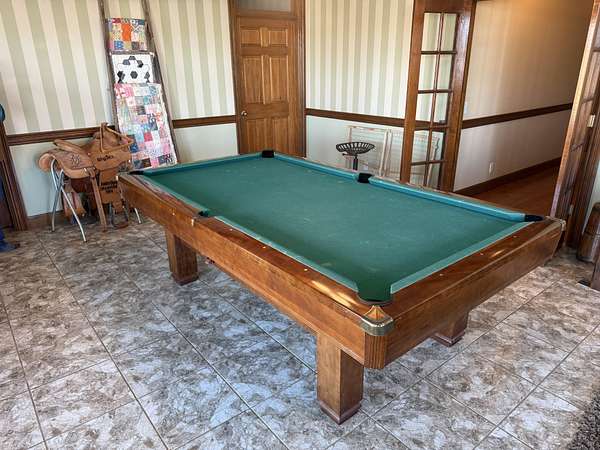 MAIN HOUSE – (6)BR, (7) BATHS Make the main house a place with room for entertaining guests! Tiled pool table room leads out to outdoor patio with swimming pool and changing rooms. Massive main BR has hardwood floors, tiled bath and large closets. Rustic stone fireplace is the centerpiece of the large living area. Lots of inside wood walls. Study/office w/cabinets. (2) Car attached garage and car port. Concrete gated driveway. White vinyl fencing.