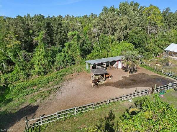 Here is your chance to own a private oasis in South Naples situated on 10.6 acres with equestrian facilities and a comfortable family home. The spacious 1,976 sqft home has high ceilings, 4 bedrooms, 2 bathrooms, two family rooms, and a laundry room with exterior access. The property features a 3-stall barn, and a few fenced in areas for horses to roam. The property is considered uplands! Located near Picayune Forest where you will find a 22-mile horse trail. No need to trailer, you have access on Sabal Palm Rd. This property has multiple uses and is zoned agricultural/residential. Build your own dream home with a guest house and have a nursery, farm and livestock. Enjoy the privacy and wildlife the area has to offer and the feel of county living while being just a few minutes from downtown & Marco Island.