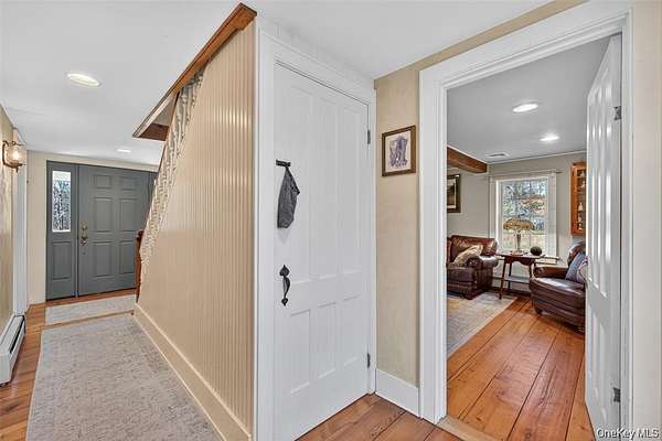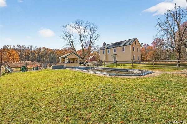 Experience the perfect blend of historic charm and modern refinement with this circa 1790 Colonial Farmhouse, thoughtfully rebuilt with meticulous attention to detail and authenticity. Set on 51 private and picturesque acres, this property embodies the true essence of Hudson Valley living peace, privacy, and panoramic natural beauty. The main home welcomes you with a warm and inviting layout designed for effortless entertaining. Featuring a spacious living room, elegant dining room, a convenient half bath, and a beautiful kitchen with timeless farmhouse style. Upstairs, you'll find three comfortable bedrooms and two well-appointed bathrooms, providing the perfect retreat after a day spent exploring your expansive grounds. Step outside and take in the breathtaking surroundings, 51 acres of open fields, wooded trails, and serene vistas, complemented by a sparkling in-ground pool with a poolside bar and cabana. Whether hosting unforgettable summer gatherings or unwinding quietly in the sun, this outdoor space offers the ideal balance of leisure and seclusion. The restored 1890 barn, offering an impressive 5,436 sq. ft., is an exceptional extension of this estate. The main level provides a heated studio/workshop space with radiant floors and wood heat perfect for creative pursuits or large-scale projects. The fully renovated upper level features a 3-bedroom, 1.5-bath apartment complete with a private deck overlooking peaceful pastoral views. Ideal for multi-generational living, guest quarters, or income-producing rental opportunities. Here, nature and convenience meet. Enjoy miles of scenic tranquility, while being just 20 minutes from New Paltz and only 15 minutes from the world-renowned Mohonk Preserve and Minnewaska State Park. This is more than a home it's a rare Hudson Valley estate offering history, versatility, and unmatched countryside living.