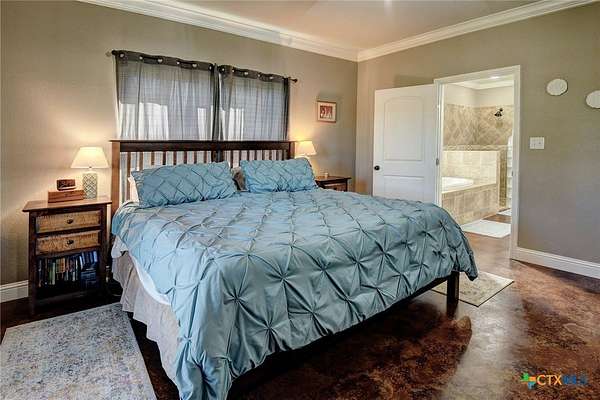 Beautifully crafted and custom built, this expansive 4,151 sq ft home sits on 8.7 acres, offering the perfect blend of country charm with the convenience of city utilities. With 6 bedrooms and 3.5 baths, the open-concept design welcomes you into a spacious living room featuring vaulted ceilings, crown molding, wood-accented details, and a striking stone fireplace surround with an Ashley wood-burning standalone stove. The kitchen and baths are tied in by rich granite countertops that complement the custom wood cabinetry and stained concrete floors throughout the main level. The downstairs master suite includes a spacious walk-in closet and a double-vanity ensuite with a relaxing garden tub and separate shower. Also on the main level is a functional mudroom/utility room complete with a sink, washer and dryer hookups, additional storage space, and convenient backyard access. Two additional downstairs bedrooms share a Jack-and-Jill style bathroom, each with its own private vanity. Upstairs, a spacious loft-style game room anchors two more bedrooms and a full bathroom with a single vanity. Attic access provides extra storage options. Outside the home the property continues to show off it's custom features including a custom in-ground pool with built-in hot tub-ideal for entertaining or unwinding. The covered back patio includes an outdoor grilling area with a sink, making it perfect for gatherings. A detached two-car carport with enclosed workshop and a full bathroom sits just off the home and include a covered concrete RV parking area equipped with a 30-amp plug. Beyond the workshop is a project animal barn with pens, well-suited for livestock, horses, or 4H/FFA project animals.