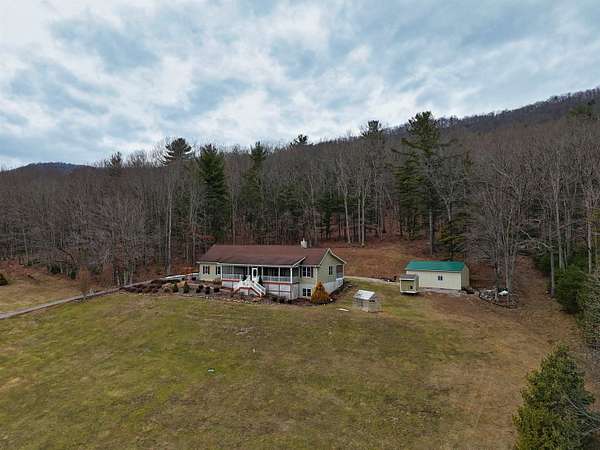 Enjoy the MILLION-DOLLAR view from the screened-in front porch of this lovingly cared-for 3BR, 2BA ranch on 10+ acres, just 16 minutes to VT! Ideal for horses, cattle, or hunting in the wooded acreage out back. Perfect for entertaining and remote work with a formal dining room, office, and a living room featuring a woodstove and vaulted ceiling. Efficient geothermal heat pump. The eat-in kitchen offers a bar area, bay-window dining nook, stainless appliances, double oven, and built-in microwave. The primary suite includes a walk-in closet, double-sink vanity, soaking tub with beautiful tilework, and separate shower. The partially finished walk-out basement includes a rec room and a second screened-in porch overlooking the barn, chicken coop, and greenhouse. A spectacular property with endless possibilities-schedule your private showing today!
