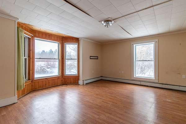 Set in picturesque Brownington, Vermont, just minutes from the historic Old Stone House Museum, this charming 1870s farmhouse offers a truly special country setting with sweeping views of the nationally renowned Willoughby Gap. Surrounded by open countryside, the location is peaceful, scenic, and hard to match. The home has been thoughtfully updated over the years. It could use some minor cosmetic updates but appears in good overall condition. It features a durable metal roof and modern conveniences while preserving its timeless character, including beautifully maintained wide-plank wood floors. Enter through the inviting screened porch from ample parking, or directly from the attached one-car garage with additional workshop space. Inside, the porch opens to a spacious kitchen with convenient access to the garage mudroom, hallway, and foyer. The main level also includes a generous living room, and a combined laundry area and 3/4 bath. Upstairs, a bright landing leads to three large bedrooms and a full bathroom. A walk-up attic provides partially finished space ideal for future expansion or additional living area. The basement offers a hot air heating system, oil tank, hot water tank, stone foundation, and spray-foam insulation for added efficiency. Outside, the barn/shed offers endless possibilities as a workshop, sugaring shed, or animal space, all set on 21.2 acres of beautiful Vermont land. This exceptional property is ready for its next owner to make it home.