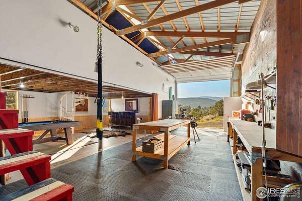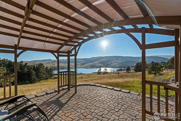 Nestled in a serene setting just 25 minutes from downtown Loveland, this unique property offers privacy, mountain views, and a lifestyle designed for both comfort and versatility. Zoned for horses and surrounded by mature trees and landscaping, the home is perfectly positioned to capture sweeping views of Pinewood Reservoir and the surrounding foothills. With multiple kitchens, entrances, and living areas, this residence is ideal for multi-generational living. Bedroom 3 is a detached in-law apartment, offering independence while staying close. Inside, you'll find multiple office spaces (one easily convertible into a 4th bedroom), abundant storage, and several fireplaces-both indoors and out-for cozy gatherings year-round. Outdoor living shines with expansive decks and patios on multiple levels, winding paths throughout the property, and a welcoming outdoor fireplace. Whether entertaining or simply soaking in the peaceful surroundings, every corner invites connection with nature. Car enthusiasts, hobbyists, or those in need of serious workspace will love the oversized garage complex featuring a recreation room, shop, craft room, loft, carport, and patio. Additional detached garage space provides even more storage and flexibility. Close to Carter Lake and Pinewood Reservoir recreation areas and trails, this property is the perfect balance of retreat and convenience-offering room to spread out, work, play, and live the Colorado lifestyle to its fullest.