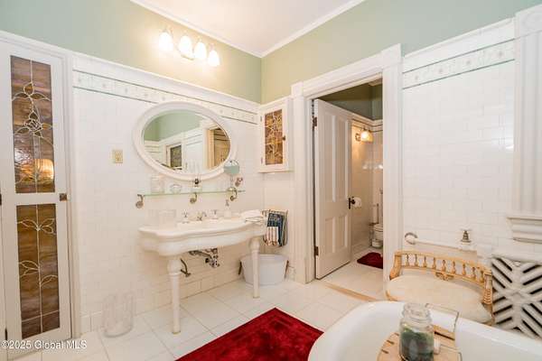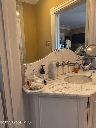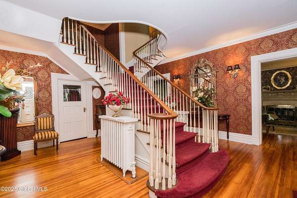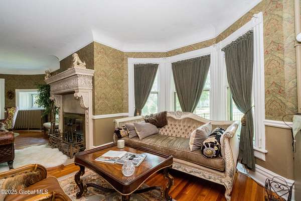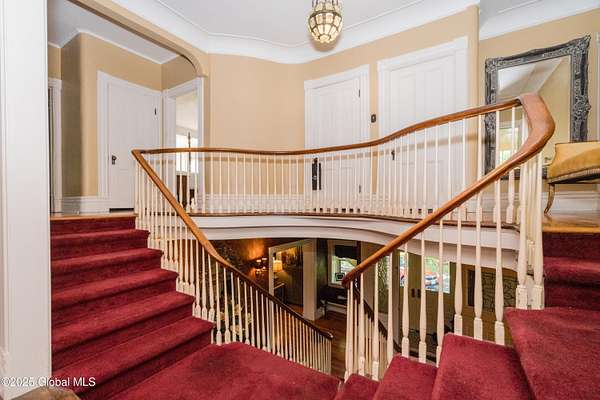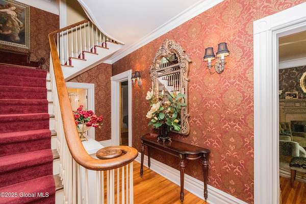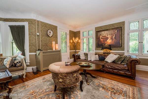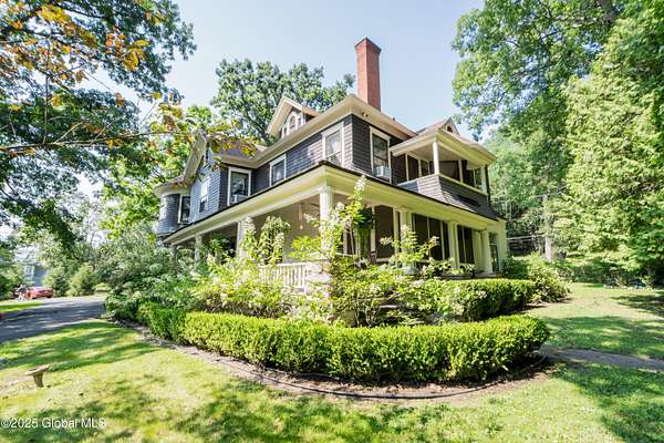 This exquisite property is the former Shuttleworth Estate, an elegant Victorian era estate built in 1890 for the carpet mill magnates. Rich in Amsterdam's history, this gracious and elegant mansion combines old world period detail with modern comfort. Perfectly maintained, this beauty showcases refined craftsmanship with extensive curly maple and oak millwork, grand 2 story foyer split staircase to the 2nd floor sleeping quarters, stained and leaded glass windows, butler's pantry, screened sleeping porch. Set on approximately 1.6 acres, the property boasts privacy gardens bordered by stone walls, two ponds, inground swimming pool, driveway entry/exit off Guy Park Av and Stewart St. This spectacular home is a site to behold, combining a bygone era with classic Ralph Lauren style decor.