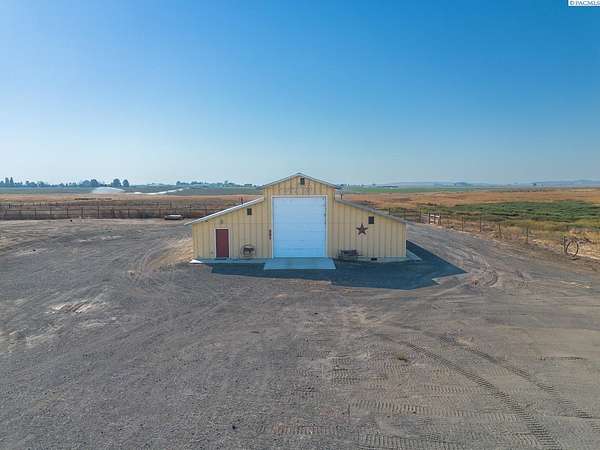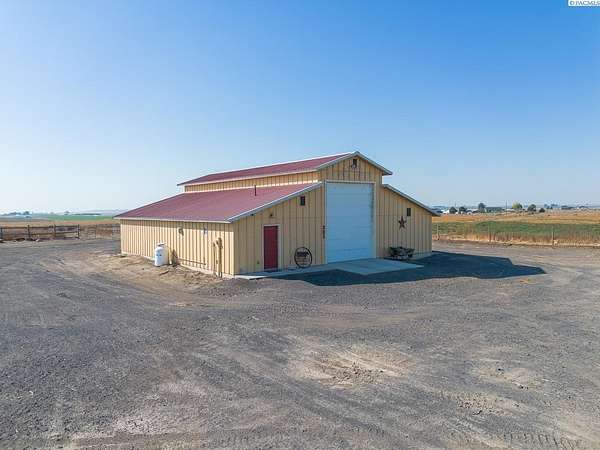 MLS# 287930 Escape to wide-open country living on 73+ acres in peaceful Eltopia! This one-of-a-kind barn dominium offers panoramic views, endless room to roam, and the rare opportunity to create your dream retreat, working ranch, or recreational getaway. From the outside, this property keeps things simple with a classic pole-building look--wood siding, metal roof and a full pass-through bay with oversized roll-up doors, and an attached workshop. Inside, the surprises unfold: on the west side you'll find a comfortable 1-bed, 1-bath residence featuring an open layout, laminate flooring, tankless hot water, a cheerful kitchen, pantry, and mudroom. On the east side is a versatile finished flex space with a propane fireplace--perfect as a rec room, guest retreat, or hobby area--plus an additional bathroom and dedicated laundry room. Between the two living areas stretches a massive drive-through shop bay with plenty of room for vehicles, equipment, or large-scale projects. The land itself is the star here. Over 73 acres of dryland awaits your livestock. Bring your cattle, sheep, or horses and enjoy space to grow and expand. A separate storage building adds even more utility for tools, feed, or seasonal gear. Whether you're looking for a private country escape, a place to raise livestock, or a property with serious shop space and untapped potential, this barndominium delivers. Rugged, practical, and full of possibilities--come put your vision to work!