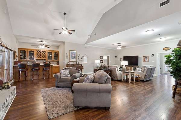 Welcome to Lake David, where peace, privacy, & stunning lake views await. This well-maintained, all-brick home is designed for gathering and entertaining. A welcoming foyer is flanked by a formal dining room & a private office with custom built-ins. The spacious living room features vaulted ceilings, a striking fireplace, & wet bar. The galley kitchen offers high-end appliances, double ovens, solid surface counters, & a granite island, plus a second dining area with custom cabinetry. Two bedrooms and a bath sit privately on one side, while the expansive primary suite boasts handcrafted woodwork, a walk-in shower, dressing area, dual closets, and a walk-in tub. Enjoy the spacious sunroom or pergola-covered deck overlooking the lake. With attached and detached garages, boat-ready carport, dock, and 2.7 acres, this is luxury lake living near Picayune with low taxes and easy access to the Coast and New Orleans. The home also includes a full house generator plus an underground propane tank.